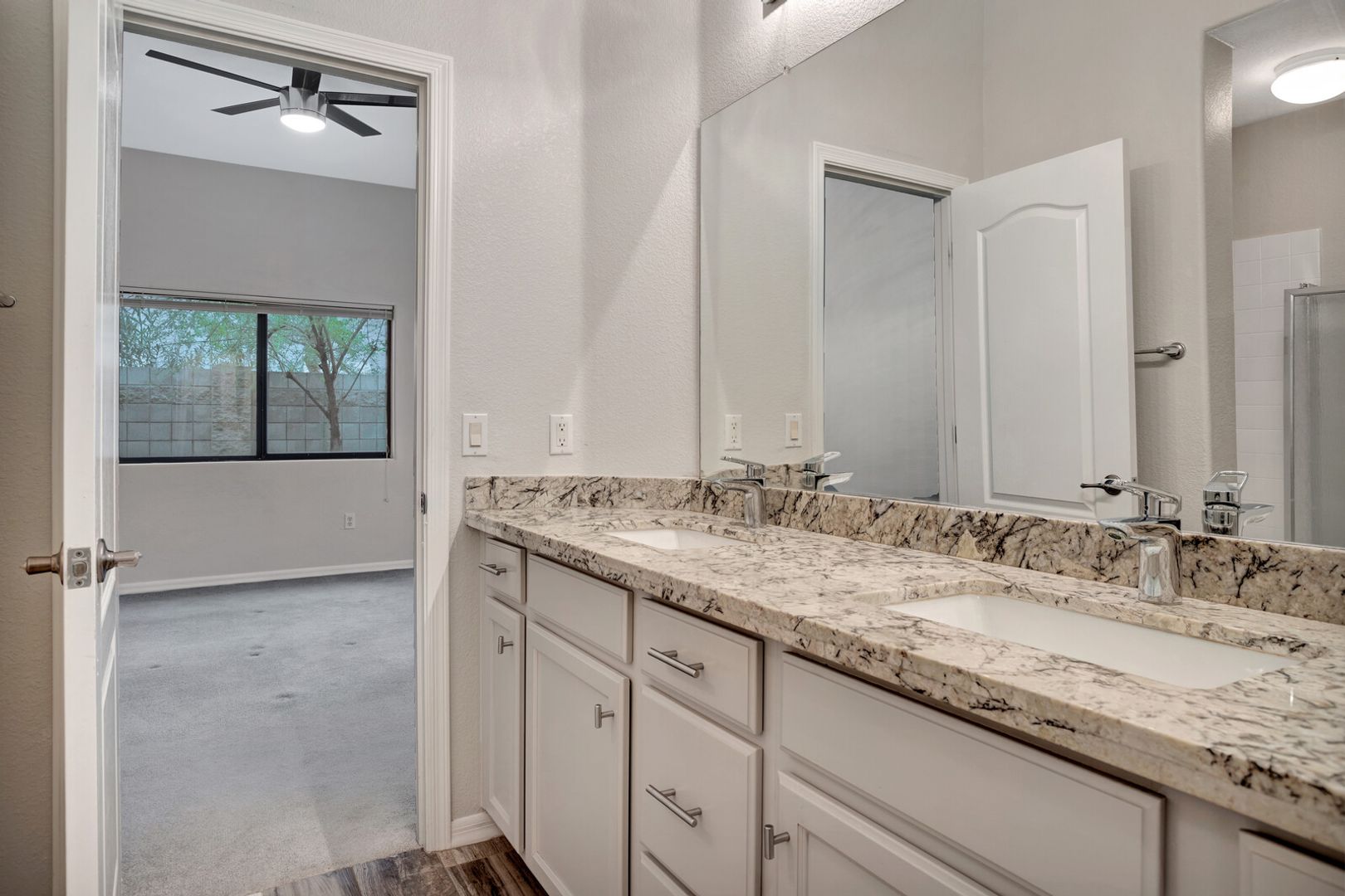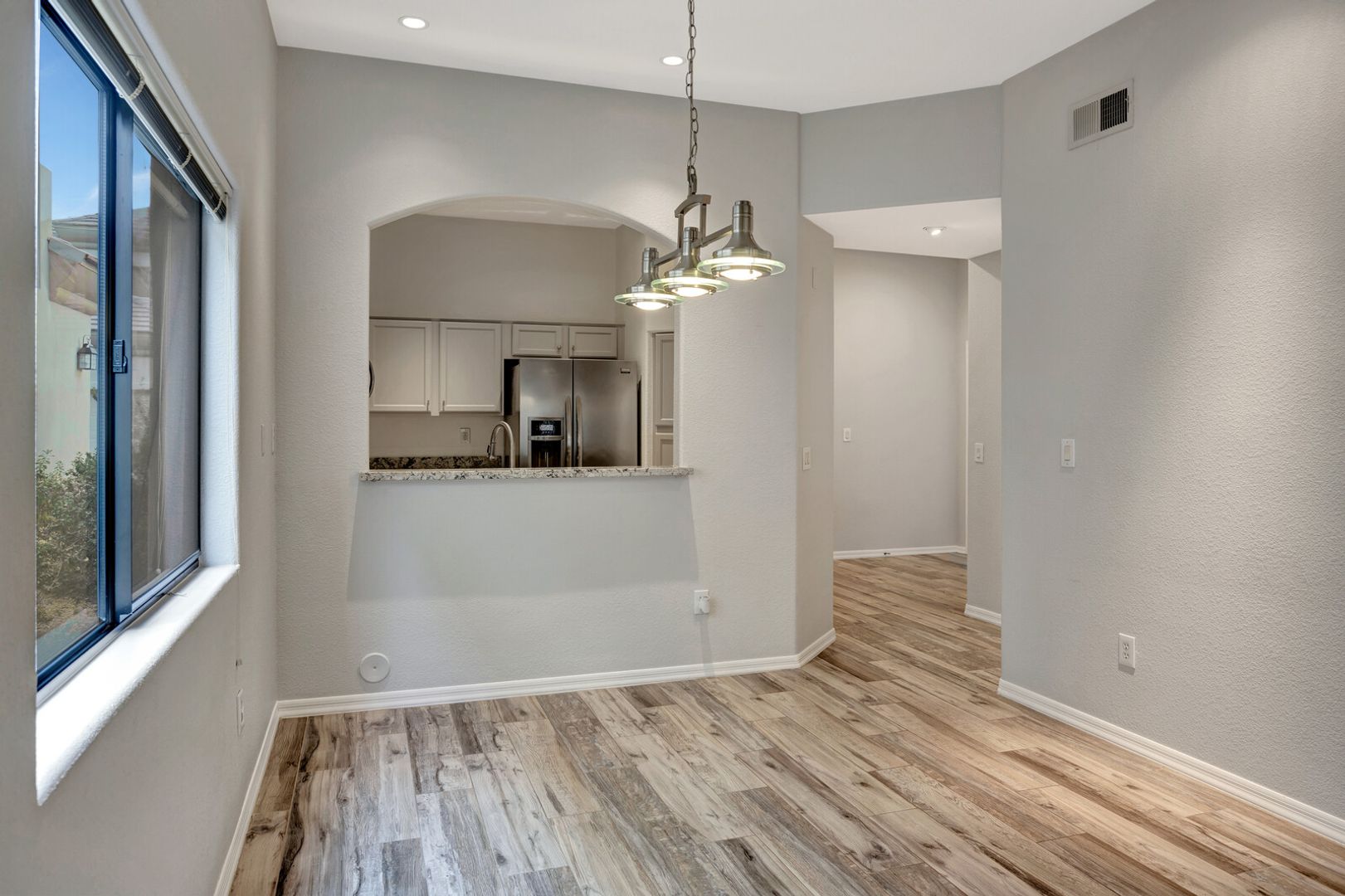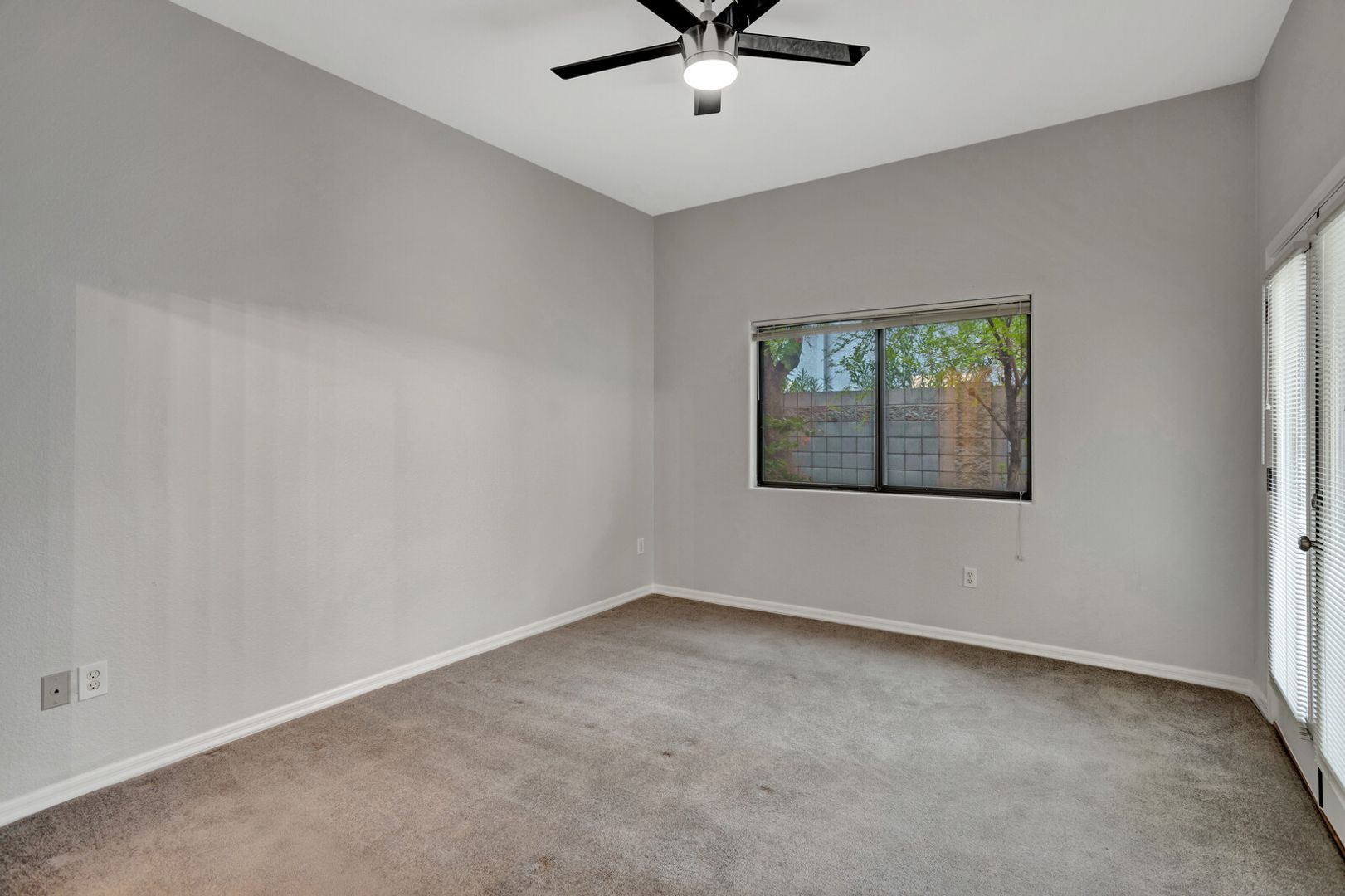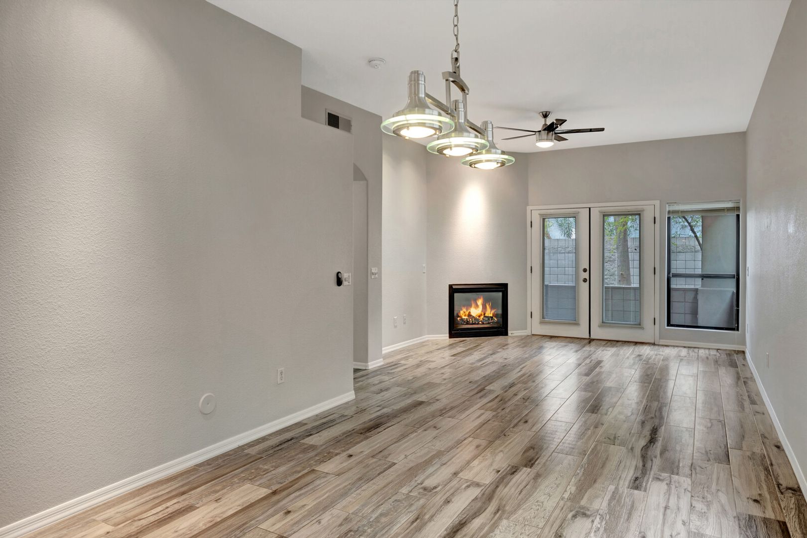 2 Bed 2 bath remodeled Townhouse W/ 1 car attached garage W direct access to house, no stairs. Open & Bright W/12 ft. ceilings, upgraded wood plank tile, gas fireplace, & covered private patio backing to open space. Master suite features french doors with access to patio, walk-in -closet, his/hers sinks, and refinished stand up shower. Open kitchen W/ Breakfast bar, granite, & stainless appliances. Located in the gated community of the Enclave, & just steps from heated pool/jacuzzi. Full size washer dryer & refrigerator included. Prime location and close to Biltmore. Condo has 1 car attached garage, & ALL OF THE COVERED PARKING SPOTS ARE NOT RESERVED, AND ARE AVAILABLE ON FIRST COME FIRST SERVE BASIS. TENANT WILL BE PROVIDED A PASS TO PLACE IN VEHICLE TO ALLOW THEM TO PARK IN COVERED SPOTS. $399 Non refundable cleaning fee and $50 new tenant admin fee. Application fee $90