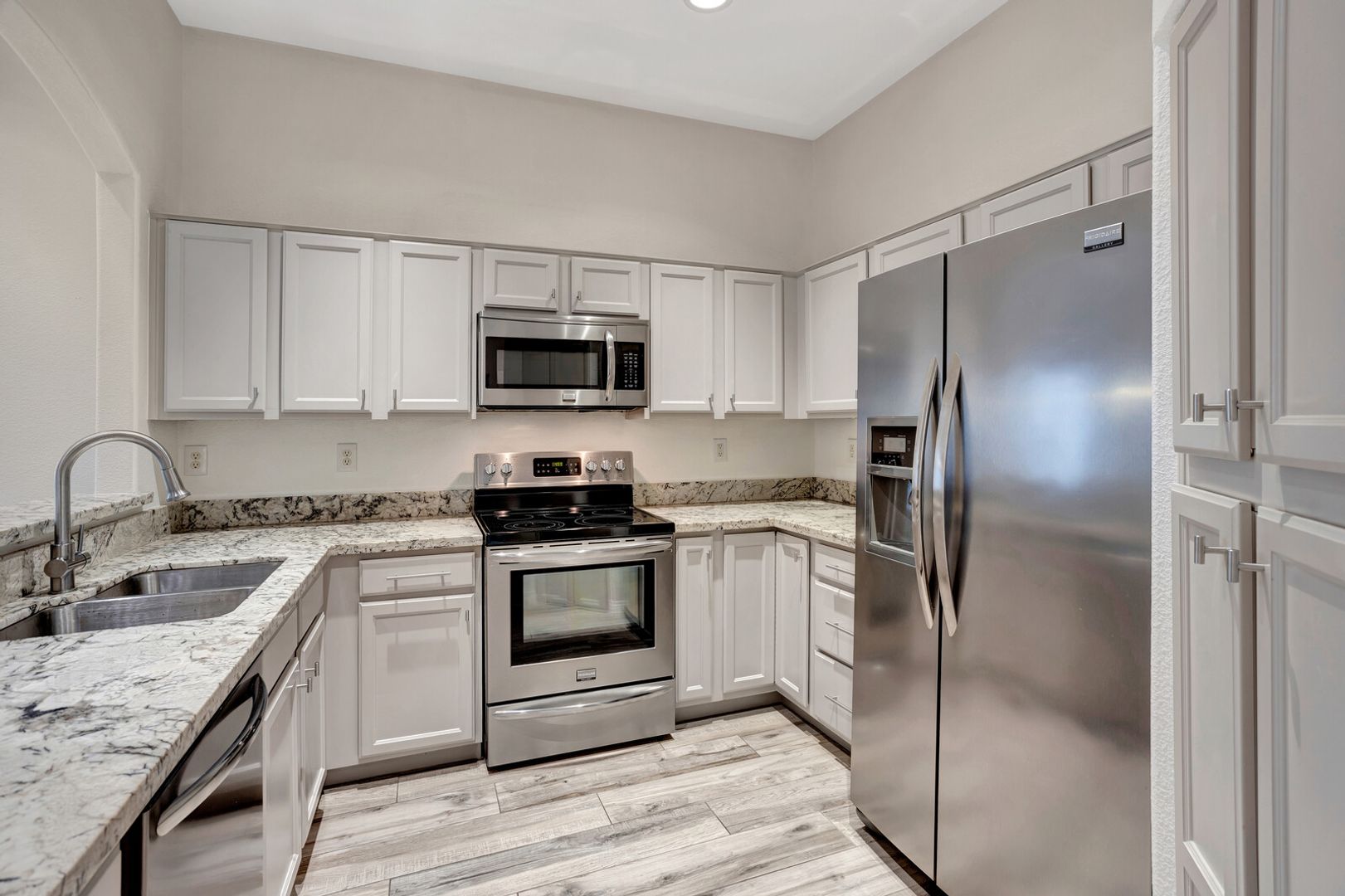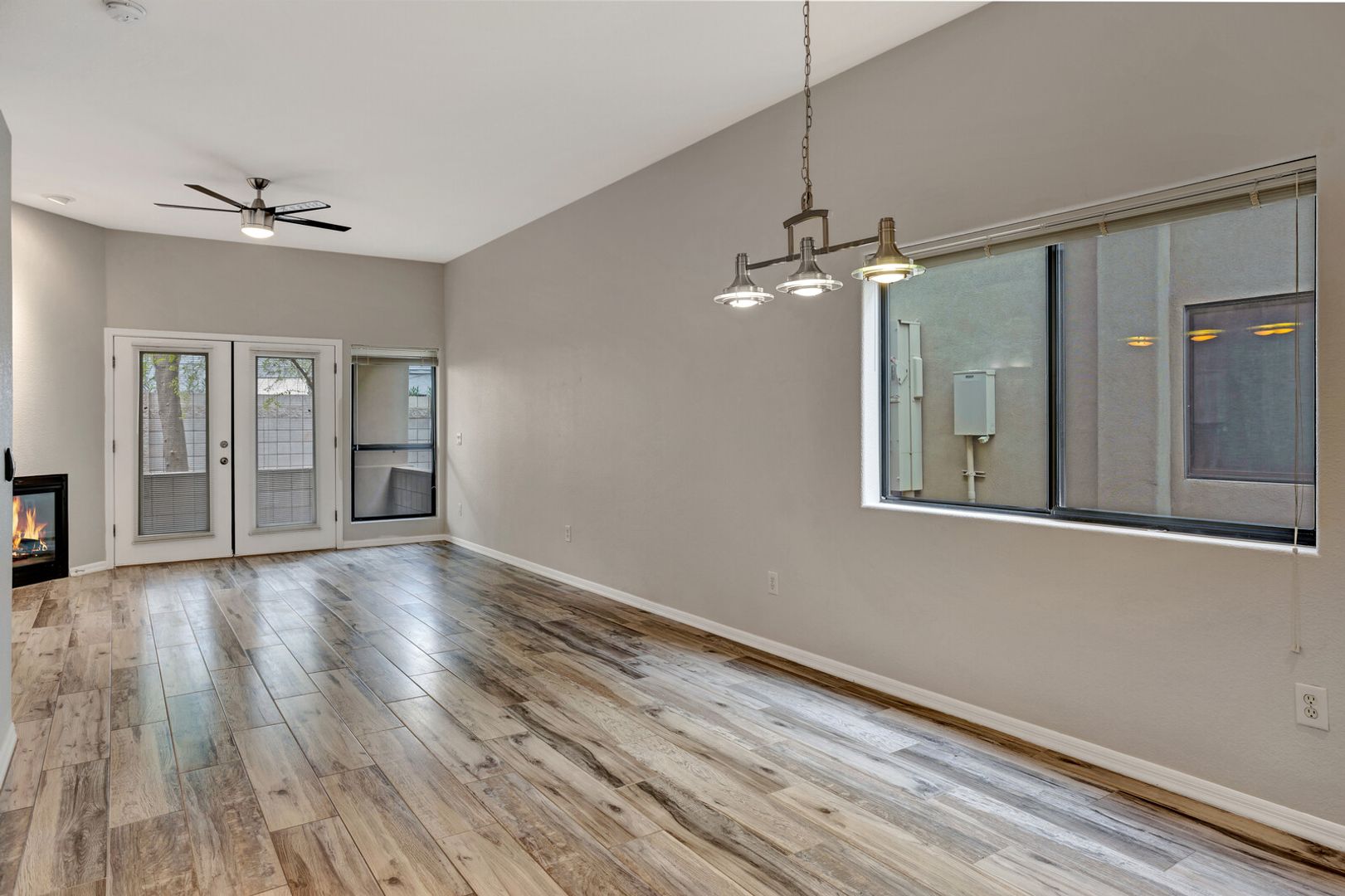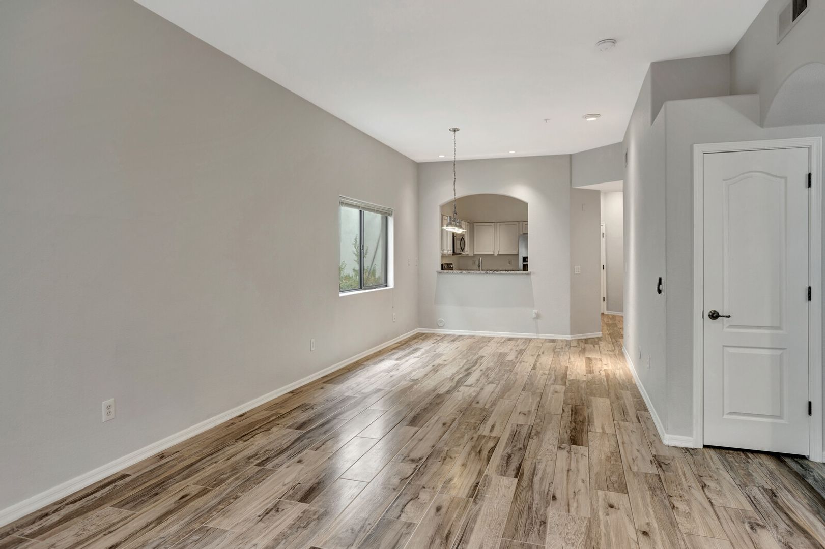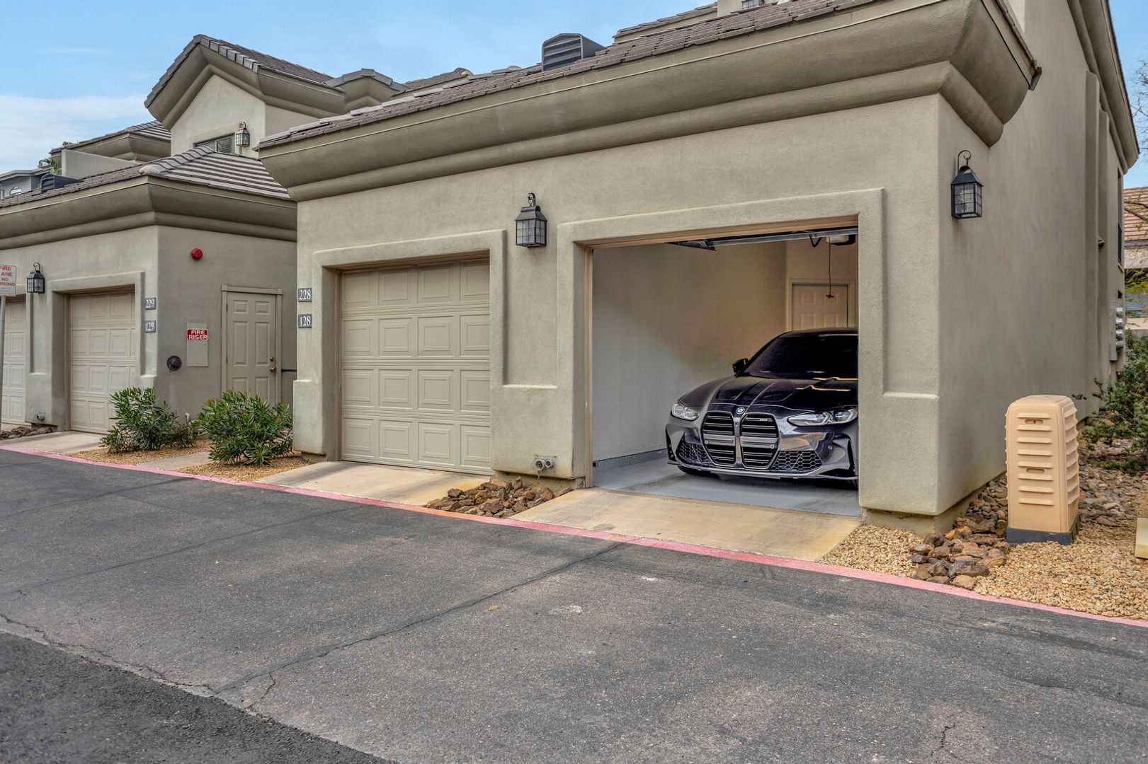 2 Bed 2 bath remodeled Townhouse W/ 1 car attached garage W direct access to house, no stairs. Open & Bright W/12 ft. ceilings, upgraded wood plank tile, gas fireplace, & covered private patio backing to open space. Master suite features french doors with access to patio, walk-in -closet, his/hers sinks, and refinished stand up shower. Open kitchen W/ Breakfast bar, granite, & stainless appliances. Located in the gated community of the Enclave, & just steps from heated pool/jacuzzi. Full size washer dryer & refrigerator included. Prime location and close to Biltmore. Condo has 1 car attached garage, & ALL OF THE COVERED PARKING SPOTS ARE NOT RESERVED, AND ARE AVAILABLE ON FIRST COME FIRST SERVE BASIS. TENANT WILL BE PROVIDED A PASS TO PLACE IN VEHICLE TO ALLOW THEM TO PARK IN COVERED SPOTS. $399 Non refundable cleaning fee and $50 new tenant admin fee. Application fee $90