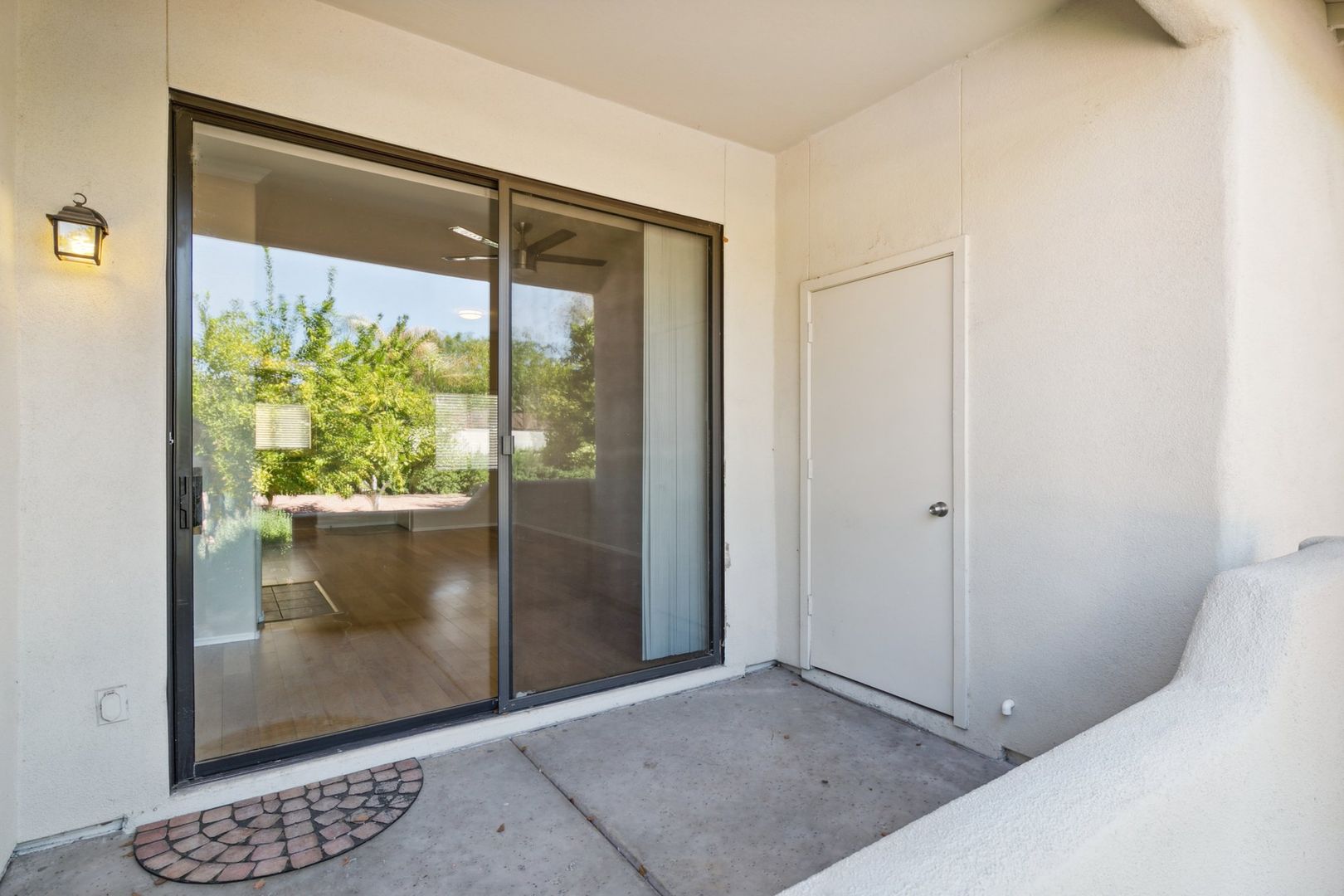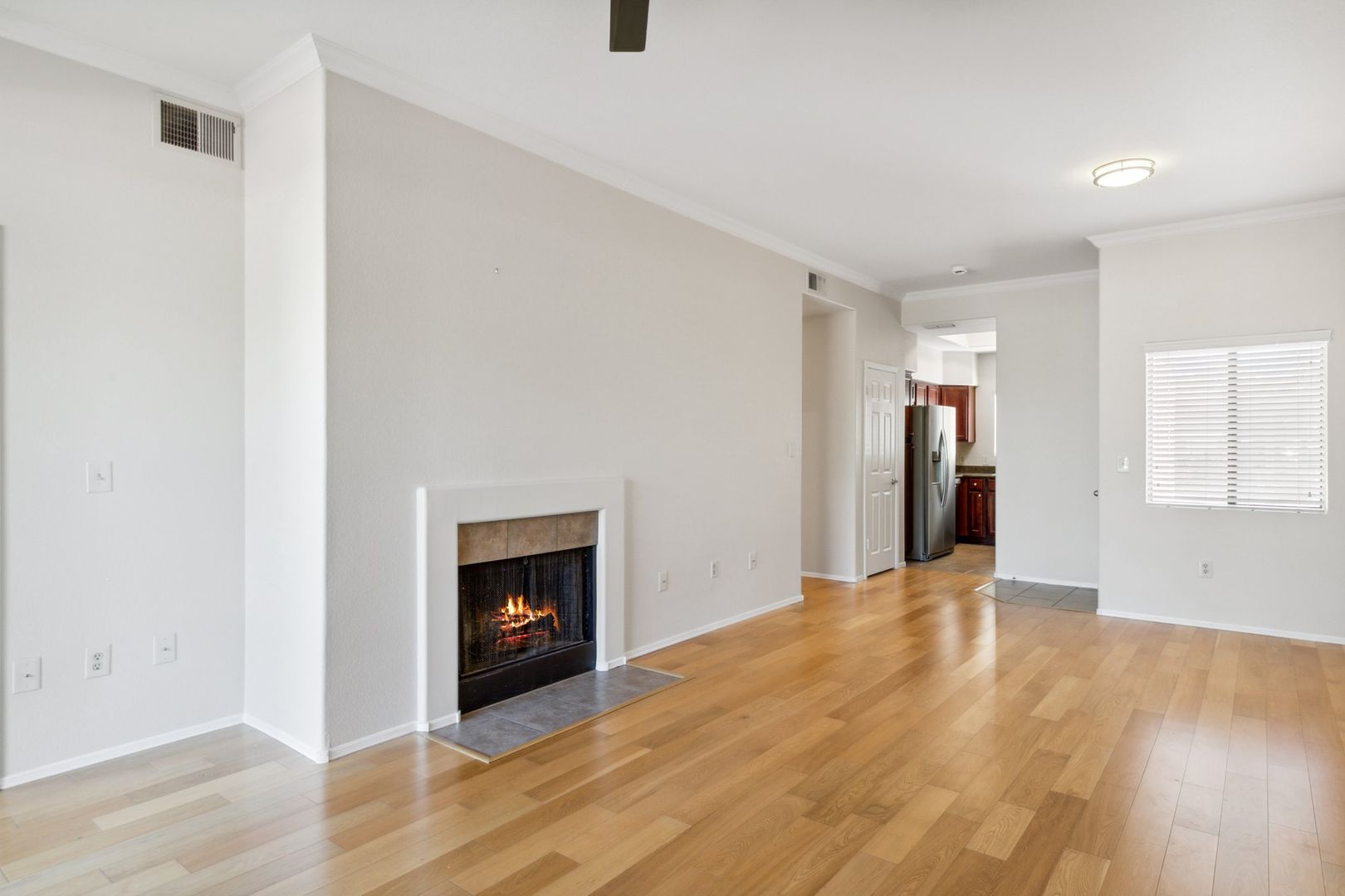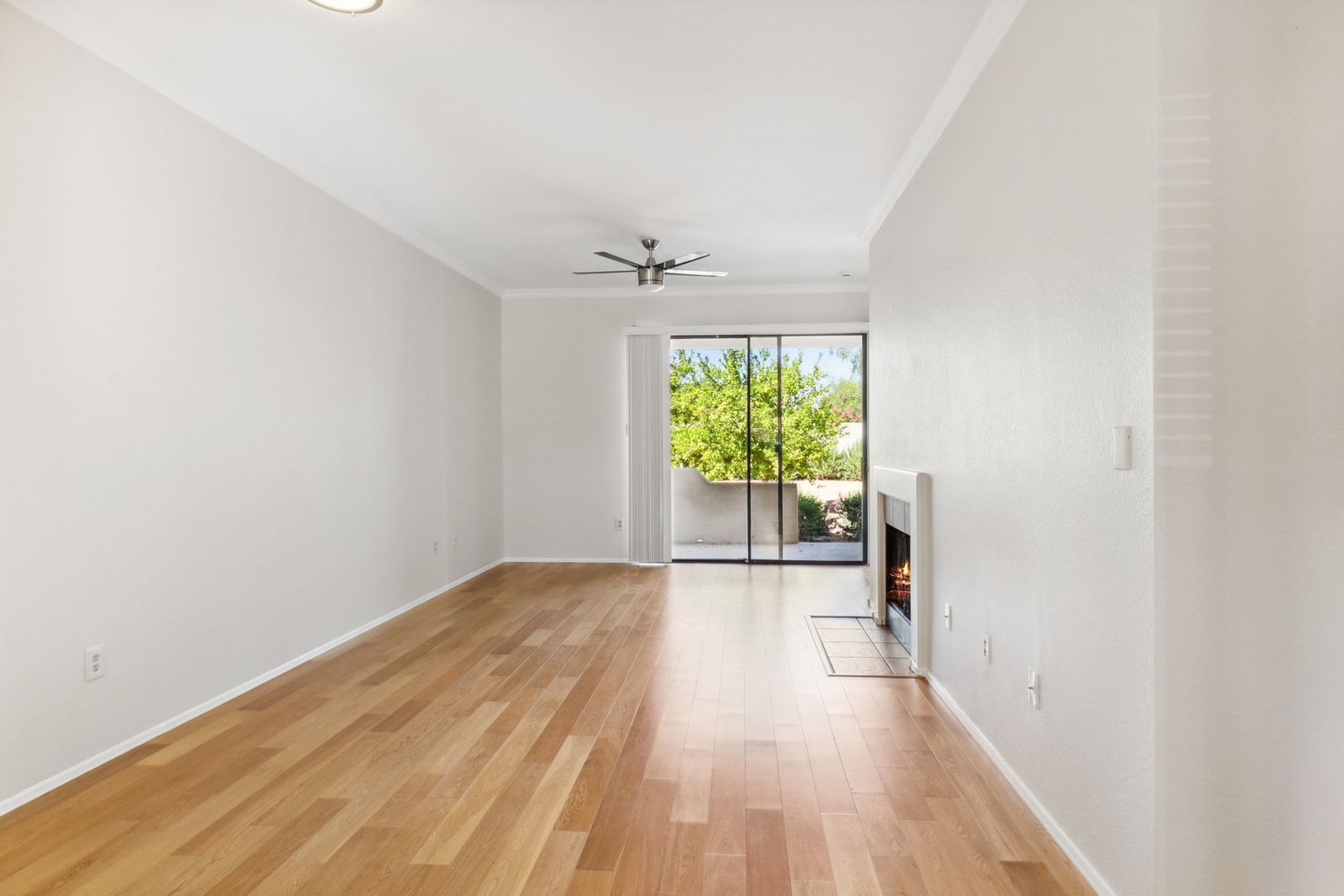 2 bed 2 bath in the gated community of Las Brisas. Rare unit, all on 1 level, with nobody above. Patio faces open area with trees. Must see! New carpet in bedrooms, freshly painted and ready for immediate occupancy. Wood floors in living and dining area, kitchen with stainless appliances, full size washer dryer, patio storage closet. Split floor plan, with bedrooms on opposite sides for privacy. Wood burning fireplace, pantry, north facing private patio. Community features 3 pools, gym, clubhouse, tennis court (with pickle ball lines) One reserved, covered, parking spot in front of unit # 4368. Pets at lessor approval. 12 month min. $175 non refundable cleaning fee if tenant uses fireplace. $399 non refundable cleaning fee, $1775 refundable damage deposit, $90 Application fee, and $50 Admin fee. Tenant pays electric, cable/wifi. Water, sewer and trash are included in the rent price.