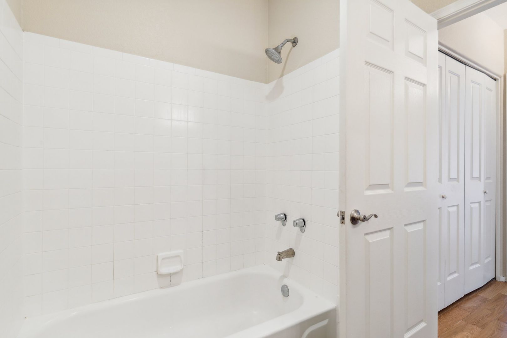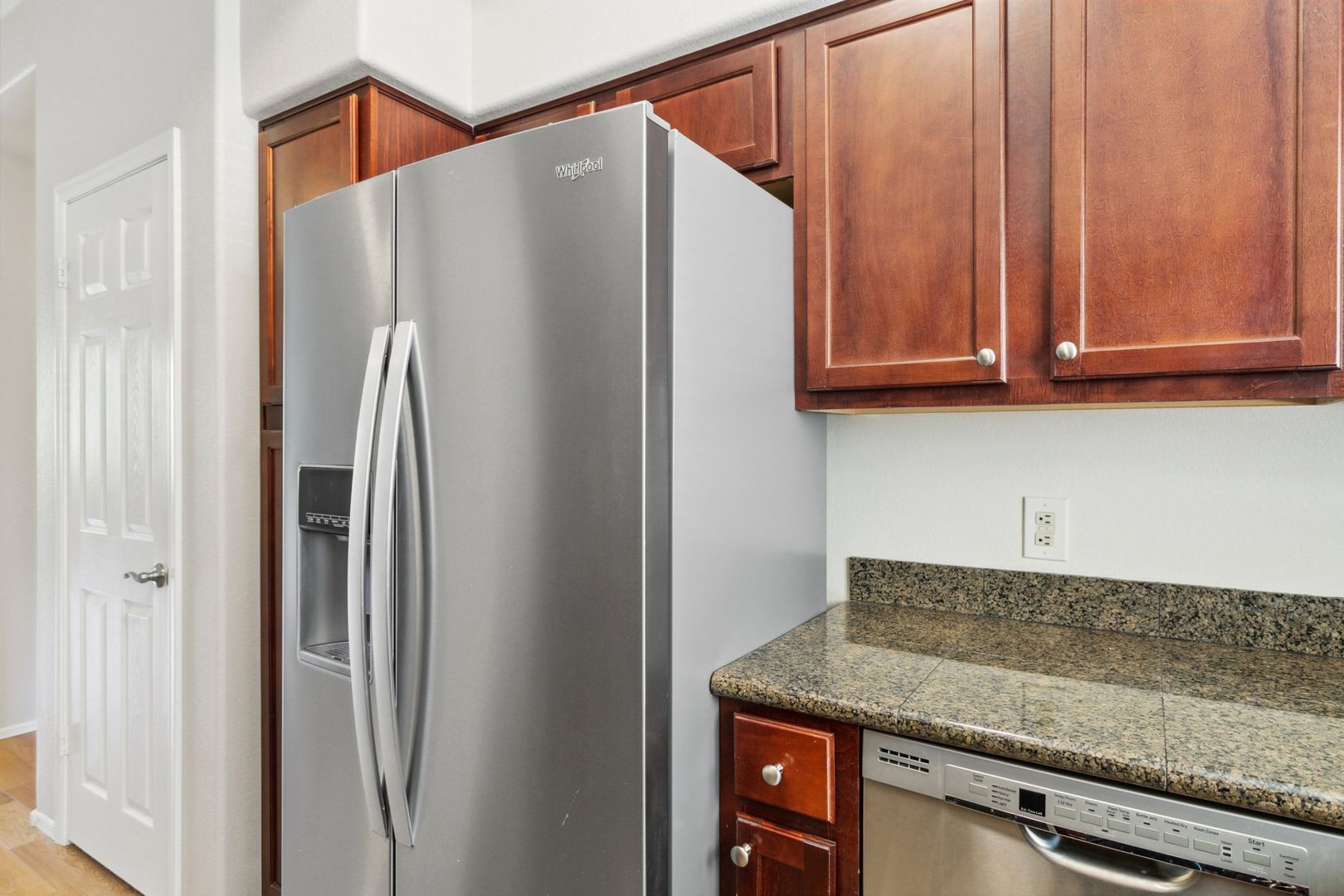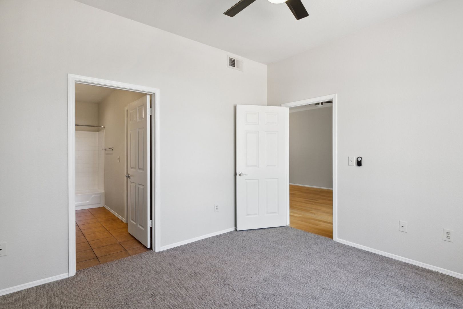 2 bed 2 bath in the gated community of Las Brisas. Rare unit, all on 1 level, with nobody above. Patio faces open area with trees. Must see! New carpet in bedrooms, freshly painted and ready for immediate occupancy. Wood floors in living and dining area, kitchen with stainless appliances, full size washer dryer, patio storage closet. Split floor plan, with bedrooms on opposite sides for privacy. Wood burning fireplace, pantry, north facing private patio. Community features 3 pools, gym, clubhouse, tennis court (with pickle ball lines) One reserved, covered, parking spot in front of unit # 4368. Pets at lessor approval. 12 month min. $175 non refundable cleaning fee if tenant uses fireplace. $399 non refundable cleaning fee, $1775 refundable damage deposit, $90 Application fee, and $50 Admin fee. Tenant pays electric, cable/wifi. Water, sewer and trash are included in the rent price.