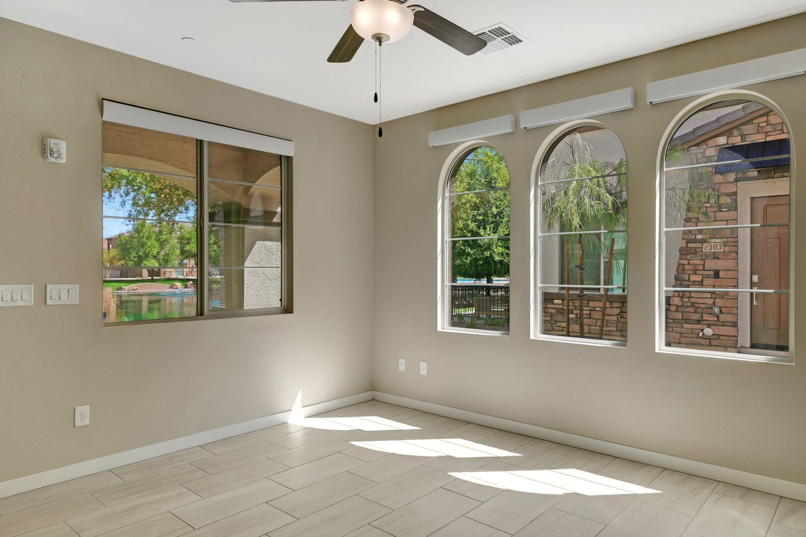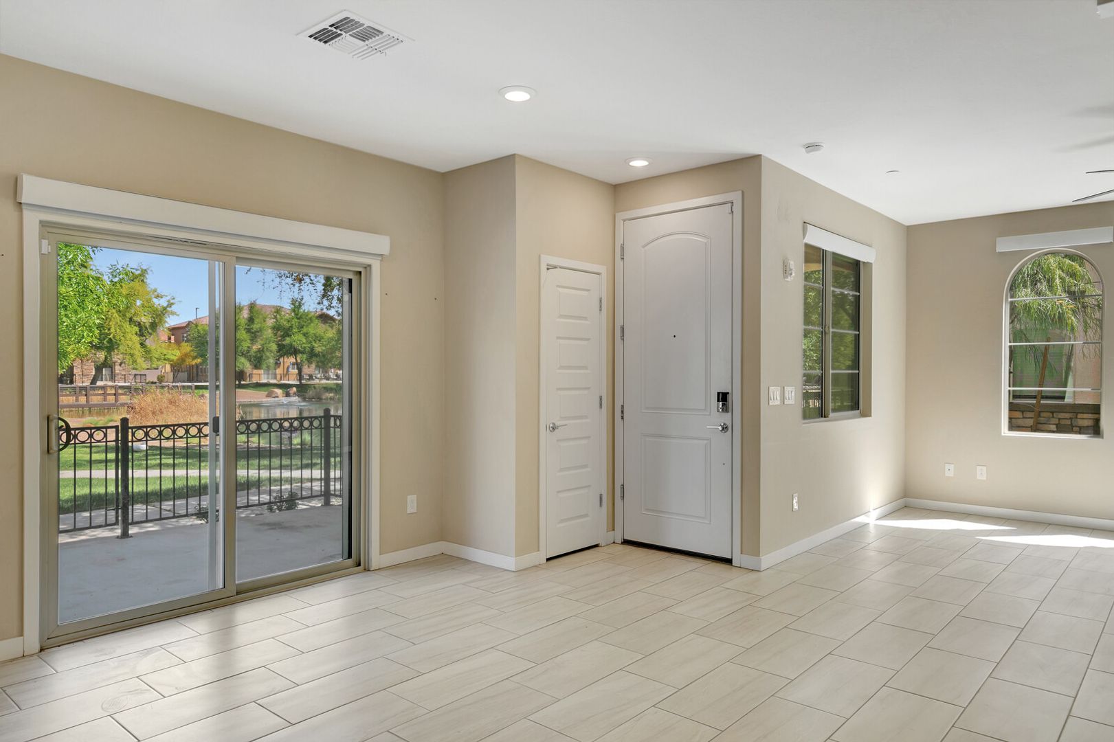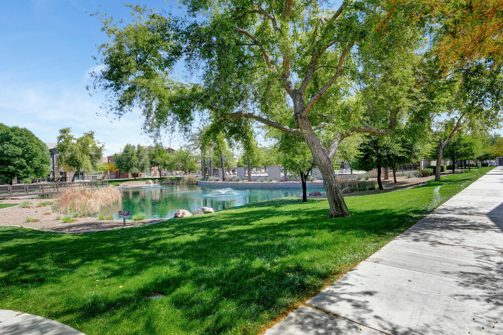 The best water lot in the Lakes at Annecy! Patio and living room face the water, and pool is just steps away. Three (3) upstairs bedrooms.  Guest bedroom is perfect for office overlooking the water. Full size washer and dryer upstairs. Master suite has a sliding glass window overlooking lake, with large walk-in closet and custom shower. TWO (2) CAR ATTACHED GARAGE, WALK-IN PANTRY, 1/2 BATH DOWNSTAIRS, REMOTE CONTROLLED, ELECTRIC BLINDS IN LIVING ROOM, KITCHEN AND MASTER BEDROOM. Beautiful Gilbert community with 2 pools, spas, fireplaces, parks, basketball court, playgrounds & 5 lakes. Ring Doorbell and security system monitoring to be paid by tenant.  Refundable security deposit due upon signing $2,499.00.  Refundable pet deposit $500.00.  Rent $2,500.00 per month.  A monthly charge of $50.00 for water to be paid in addition to the monthly rent payment.  General new tenant admin fee $50.00. $90 application fee Non-refundable cleaning fee $450.00. Community Tenant Registration fee to be paid by tenant $25.00.