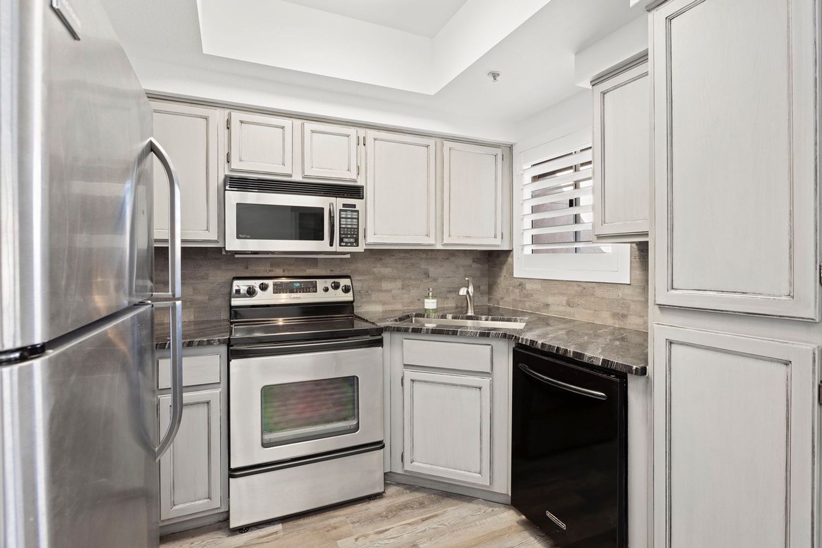 Just completed a full remodel! New carpet, paint, cabinets, custom walk-in shower, granite in bath and kitchen, wood flooring in main living area, stacked stone-wood-burning fireplace, new wood plantation shutters, stainless appliances and full size washer dryer. Other features: Master bedroom has private patio access and large walk-in closet. Private patio overlooks grassy courtyard, and BBQ is right below the unit. Storage closet on patio. This 1 bed 1 bath is in a prime location in the complex, and close to the 101. Community features, community pool, clubhouse with billiards, and tennis court. One covered and reserved parking spot which is below stairs( #k19). Nicest unit in Aventura. Refundable security deposit equal to one month’s rent due upon signing. Rent $1,500.00.   Due at move-in is a non-refundable cleaning fee $299.00 and $50.00 non-refundable general new tenant admin fee. $90 Application fee.