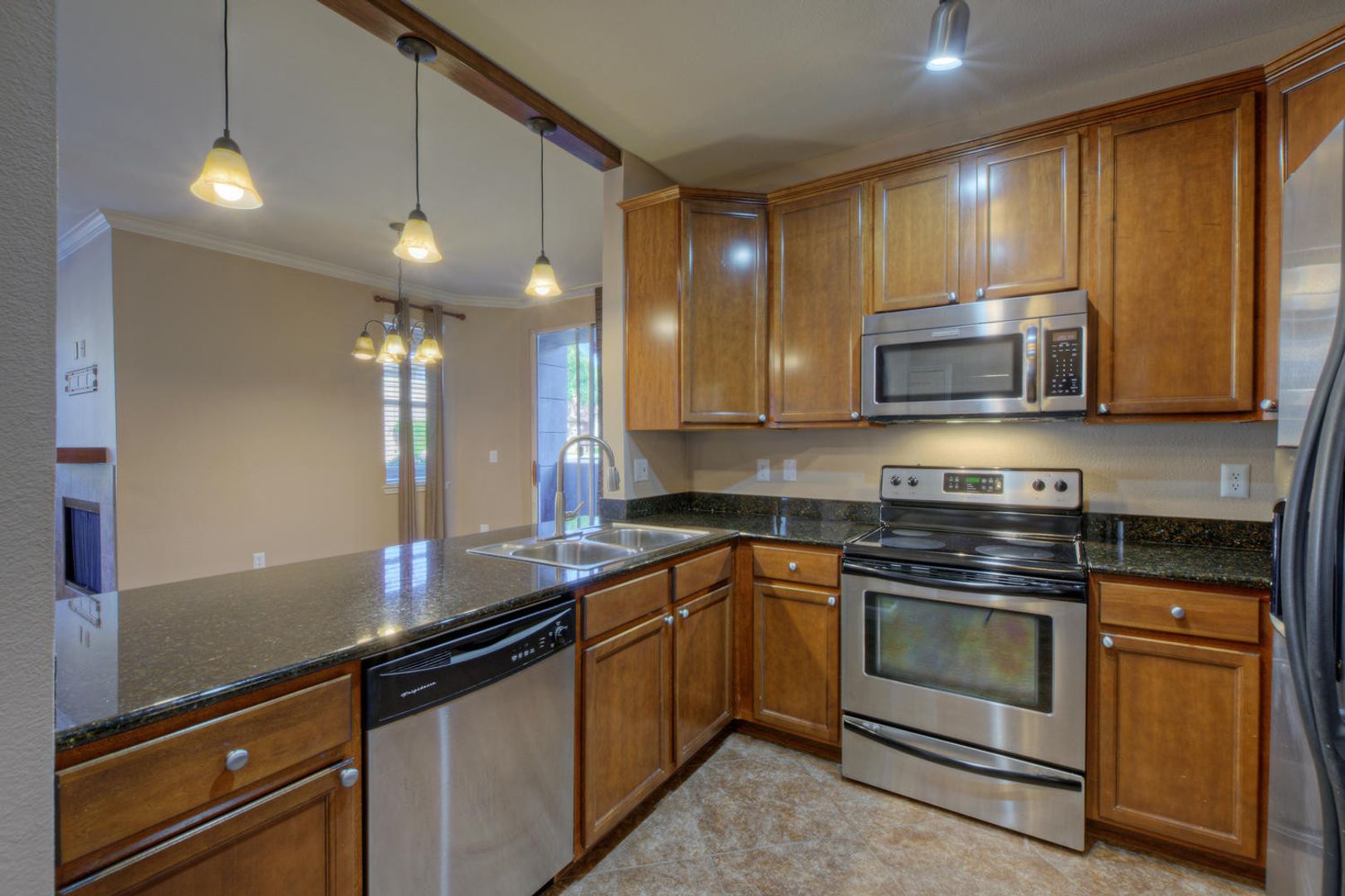 Unfurnished 3 bd 2 ba lower level condo in the popular and beautiful Kierland Commons area of North Scottsdale. This unit comes with both a ONE CAR GARAGE and ONE DESIGNATED COVERED PARKING SPACE, both just outside the front door.  All new paint throughout the unit and new carpet in all the bedrooms with tile in the rest of the unit.  New bathroom and kitchen faucets, and resurfaced tubs and showers.  Stainless steel appliances in the kitchen and granite counter tops in the kitchen and bathrooms.  Master bedroom is located on the opposite side of the property for optimum privacy and features a large walk-in closet and double sinks in the bathroom. This unit has a high efficiency AC unit, a full-sized washer and dryer inside the unit and a storage closet on the patio.  Tenant will not be permitted to use the fireplace for anything other than burning candles.  Located in the Plaza Residences which is a gated community that features 2 pools (1 heated), hydrotherapy spa, state of the art fitness center, billiards room, putting green, theater room, business center with free wi-fi and beautiful, mature landscaping. Walking distance to upscale shopping and fine restaurants.  Easy access to the 101 freeway and many local events such as the Phoenix Open, Barrett Jackson Car Show and Baseball Spring Training to name a few. Minimum one (1) year lease. Refundable security deposit - $2,500.  Rent $2,500.  Tenant is responsible for all utilities. Non-refundable cleaning fee - $450.00 and $50 new tenant admin fee. $90 Application fee