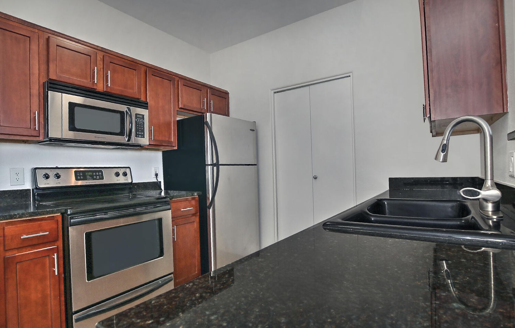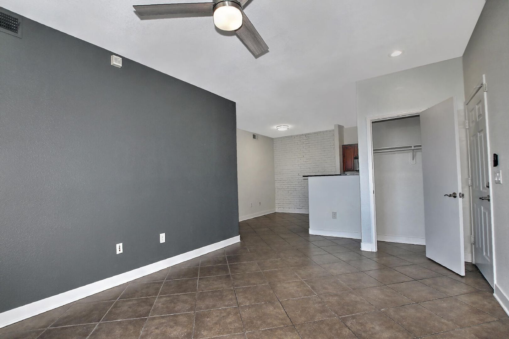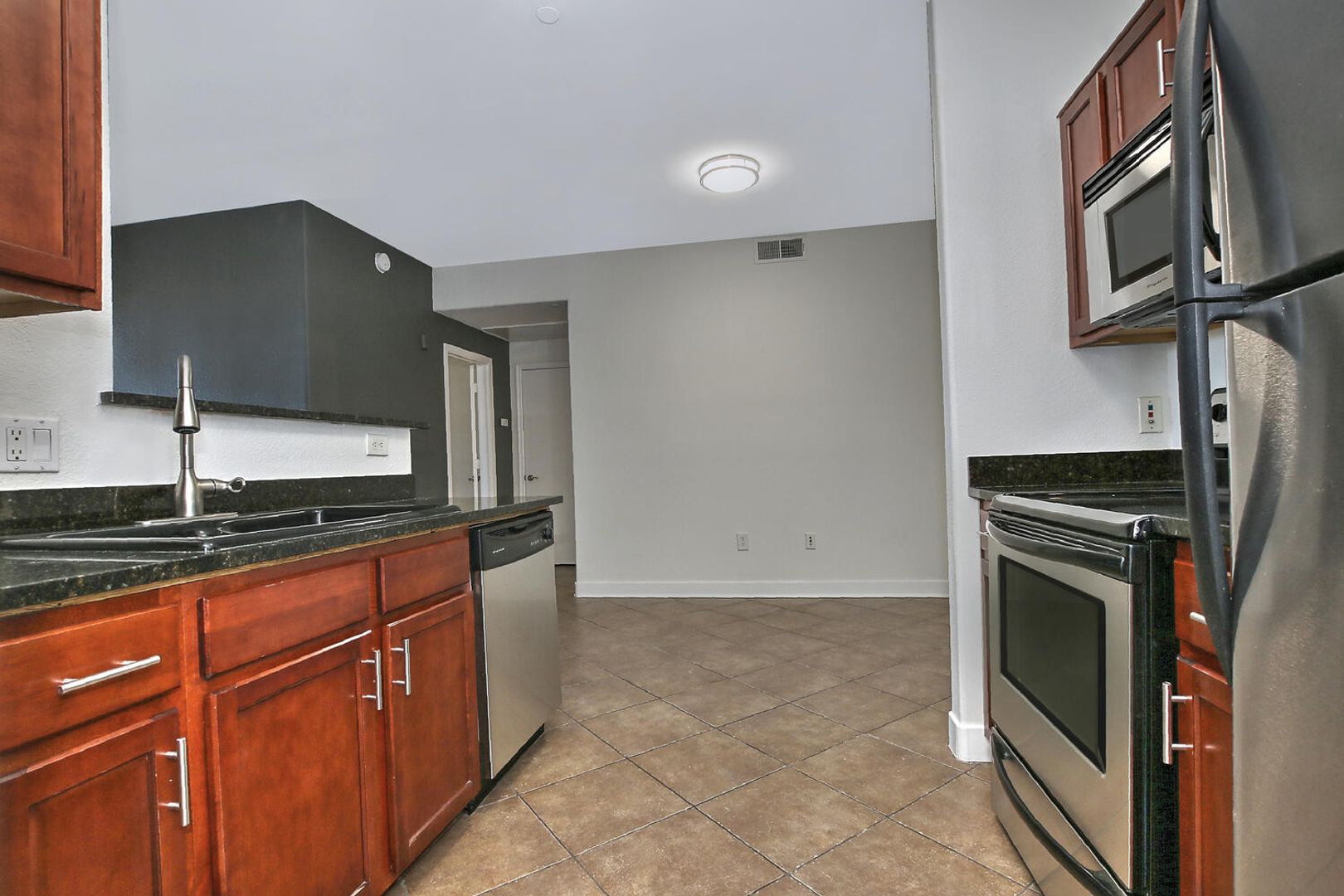No pets. Remodeled 1 bed 1 bath, second level condo in the gated community of The Brick Commons. Tile throughout (no carpet) new walk-in shower, fans, and LED lighting. Open floor plan with, private patio facing North. Separate laundry area located off kitchen with full size washer/dryer & bi-fold doors. Kitchen has granite counters, and separate wine refrigerator. Master bedroom is all tile, with large walk-in closet. Other features: Patio storage closet, one covered and reserved parking spot, large linen closet off bathroom. Walk down the stairs and pool and jacuzzi is just steps from unit. Gym, theater, billiards and putting green are additional amenities. Close to light rail and freeways. All appliances included. $50 admin fee, $90 application fee, and $299.00 non refundable cleaning fee apply to all rentals. No pets. Tenant to set up and pay for water bill. Information will be provided at time of application.