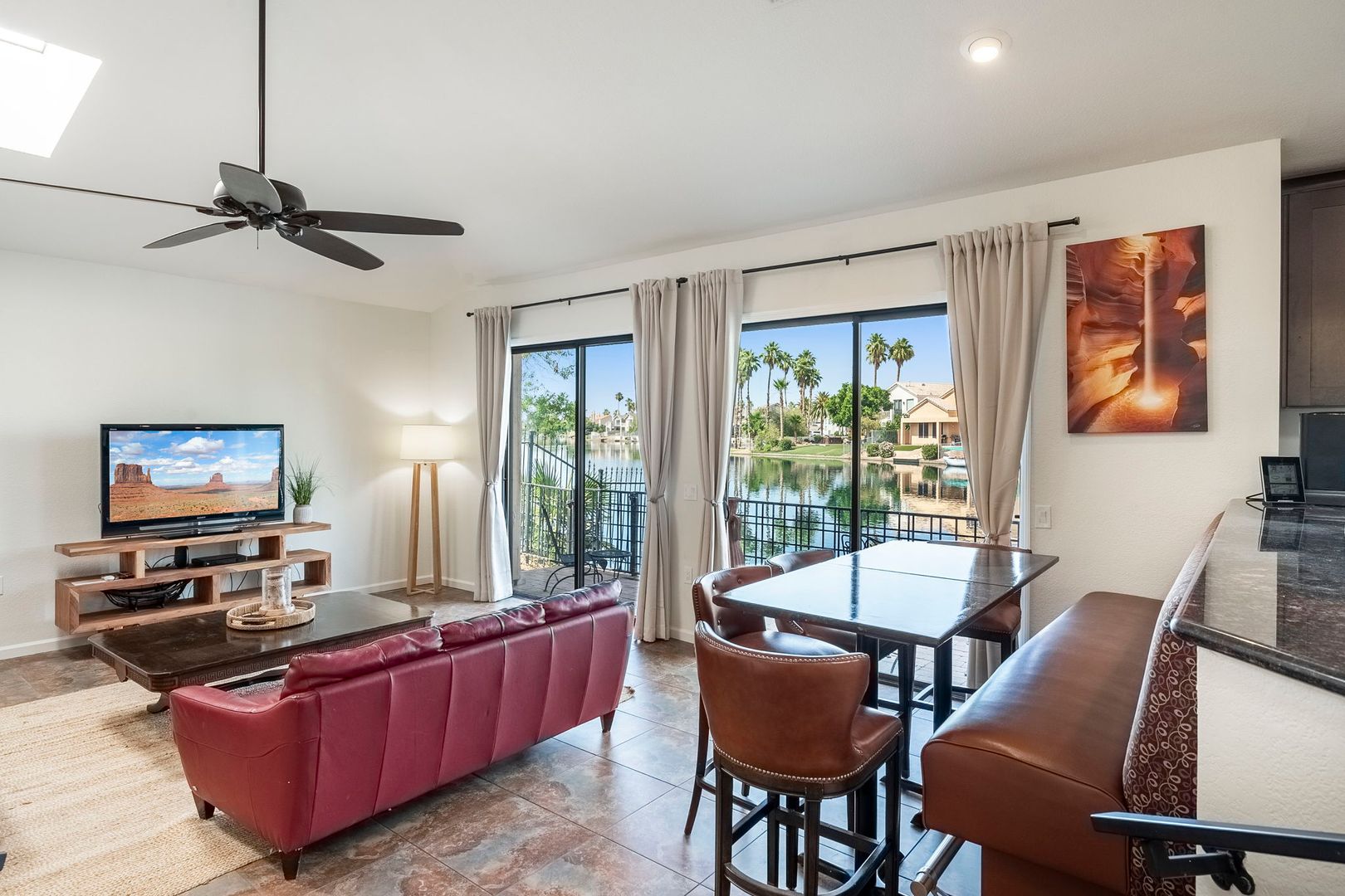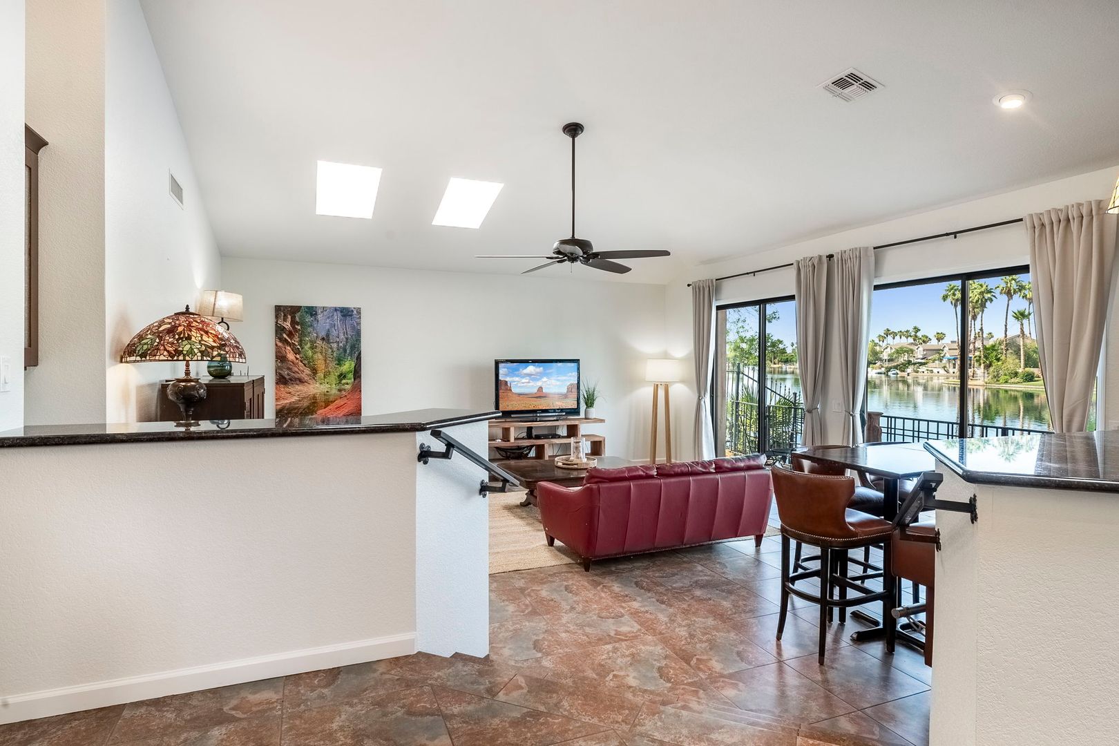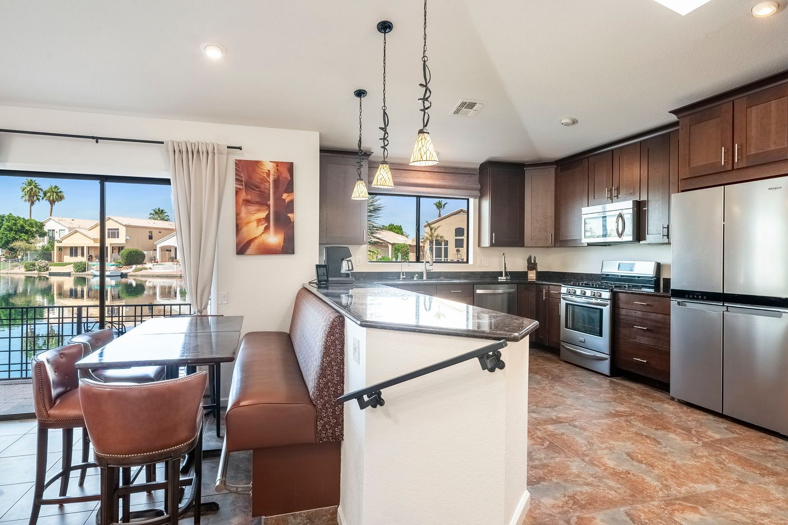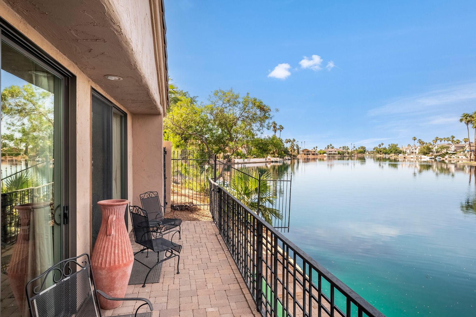 Premier lakefront lot on cul-de-sac, just steps from community pool. 3 bedroom 2 bathroom. One of the biggest patios in the subdivision, with outdoor fireplace, built in BBQ. Offered on a year lease, and it can be rented as seen furnished, or unfurnished for the same price. Raised bench eating area facing lake w/ views! Master suite has its own patio, custom walk in shower for two, walk-in closet, his/hers sinks, separate water closet, & raised granite vanity with vessel sinks. Large kitchen w/ Gas range, stainless appliances & granite counters. Wet bar with wine refrigerator in the living room, and additional wine refrigerator in the kitchen. Attached 2 car garage with storage cabinets and sink. Separate laundry room with H/E washer and dryer. Refundable security deposit $3500.00. Rent $3,500.00. Non-Refundable cleaning fee $450.00 and $50 new tenant admin fee. Application fee $90