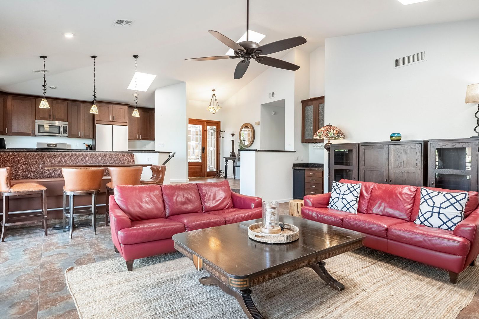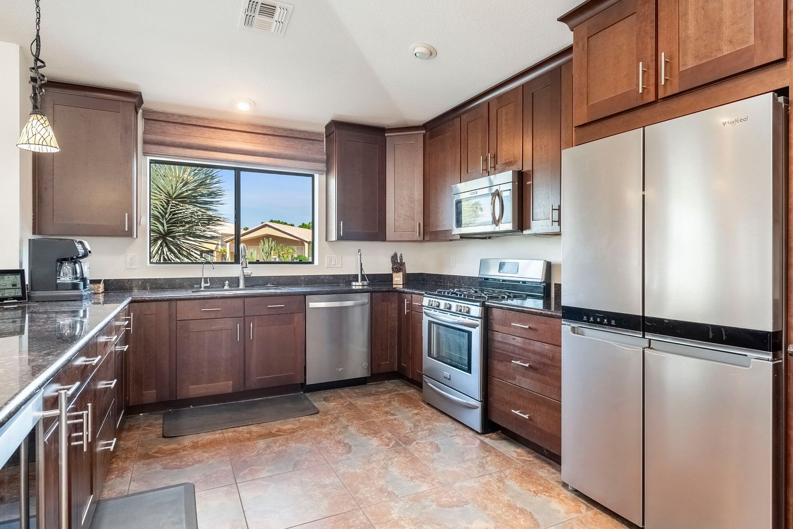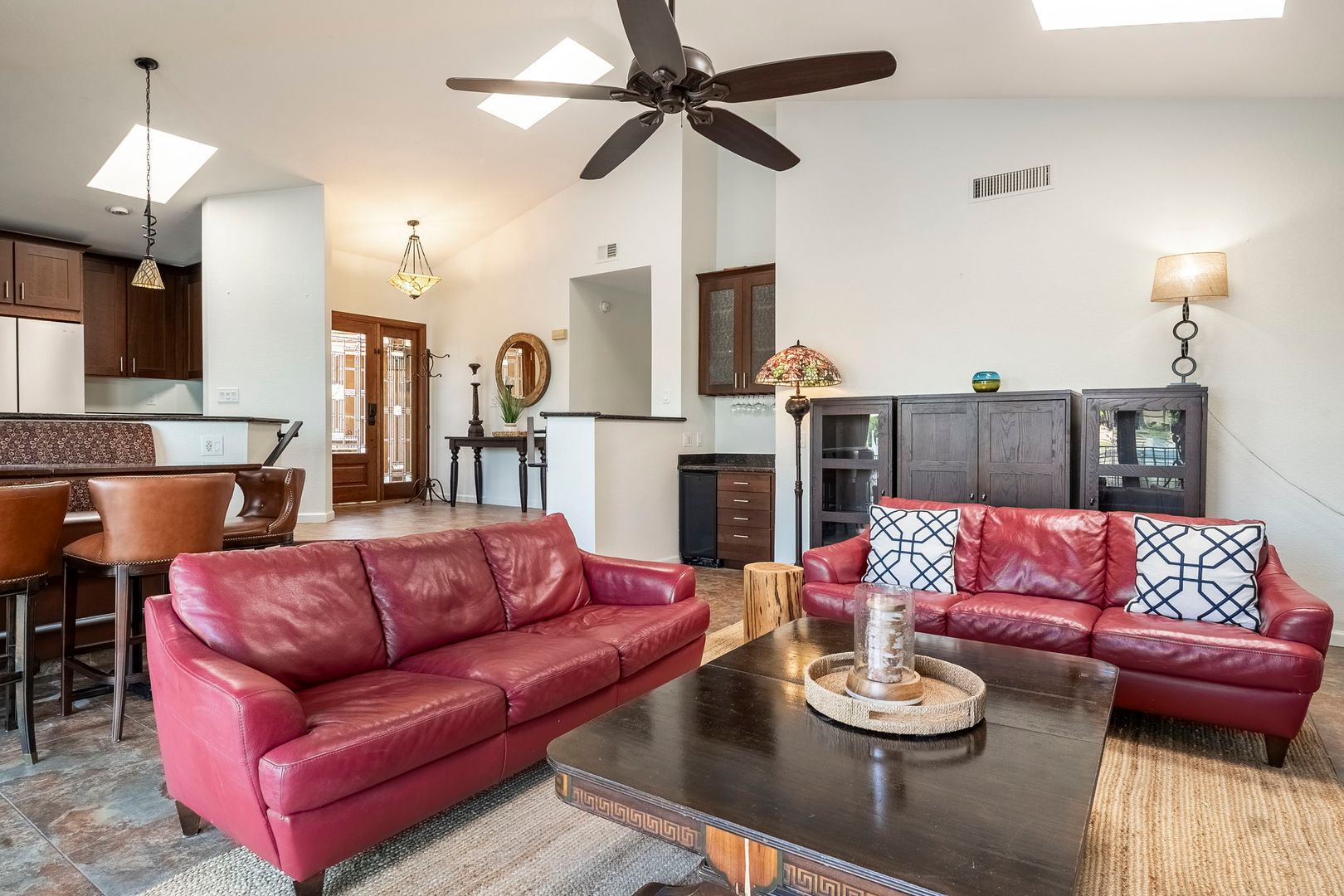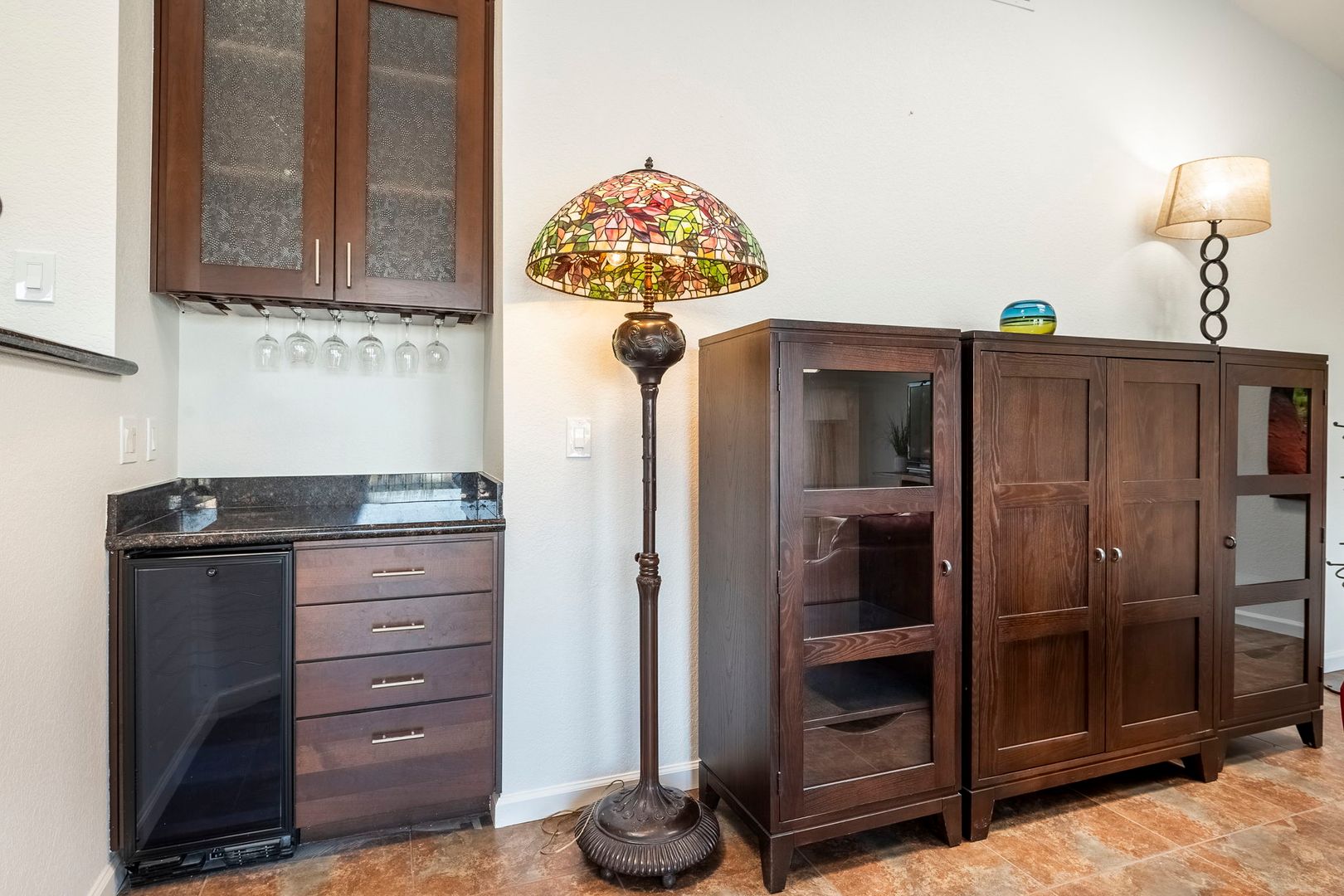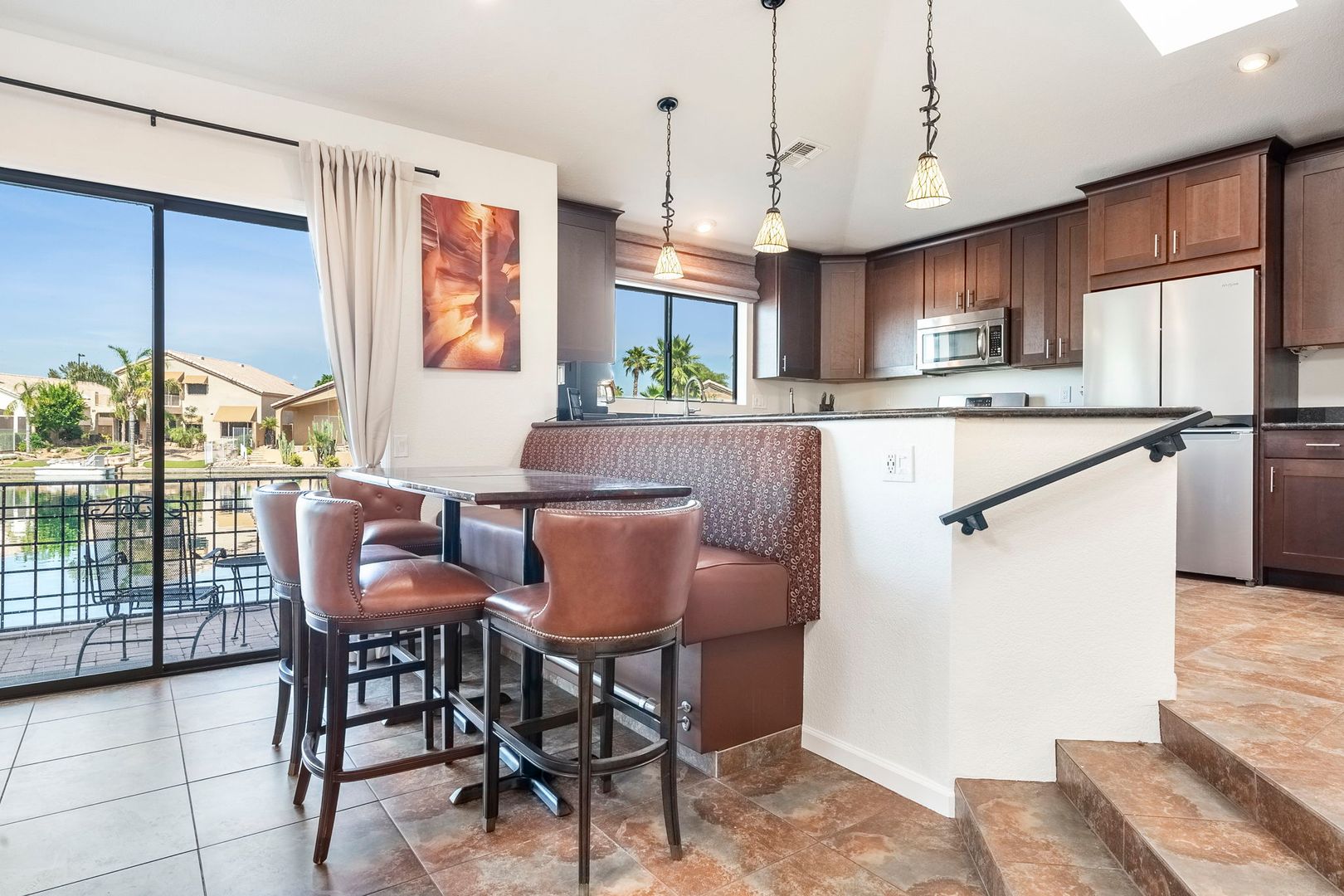 Premier lakefront lot on cul-de-sac, just steps from community pool. 3 bedroom 2 bathroom. One of the biggest patios in the subdivision, with outdoor fireplace, built in BBQ. Offered on a year lease, and it can be rented as seen furnished, or unfurnished for the same price. Raised bench eating area facing lake w/ views! Master suite has its own patio, custom walk in shower for two, walk-in closet, his/hers sinks, separate water closet, & raised granite vanity with vessel sinks. Large kitchen w/ Gas range, stainless appliances & granite counters. Wet bar with wine refrigerator in the living room, and additional wine refrigerator in the kitchen. Attached 2 car garage with storage cabinets and sink. Separate laundry room with H/E washer and dryer. Refundable security deposit $3500.00. Rent $3,500.00. Non-Refundable cleaning fee $450.00 and $50 new tenant admin fee. Application fee $90
