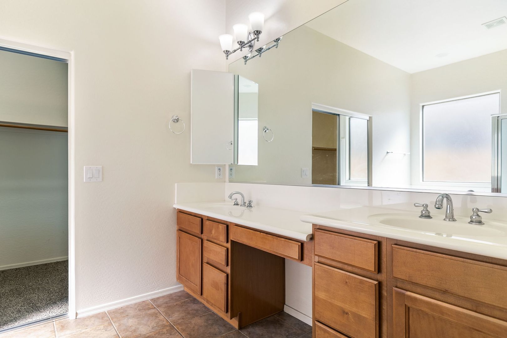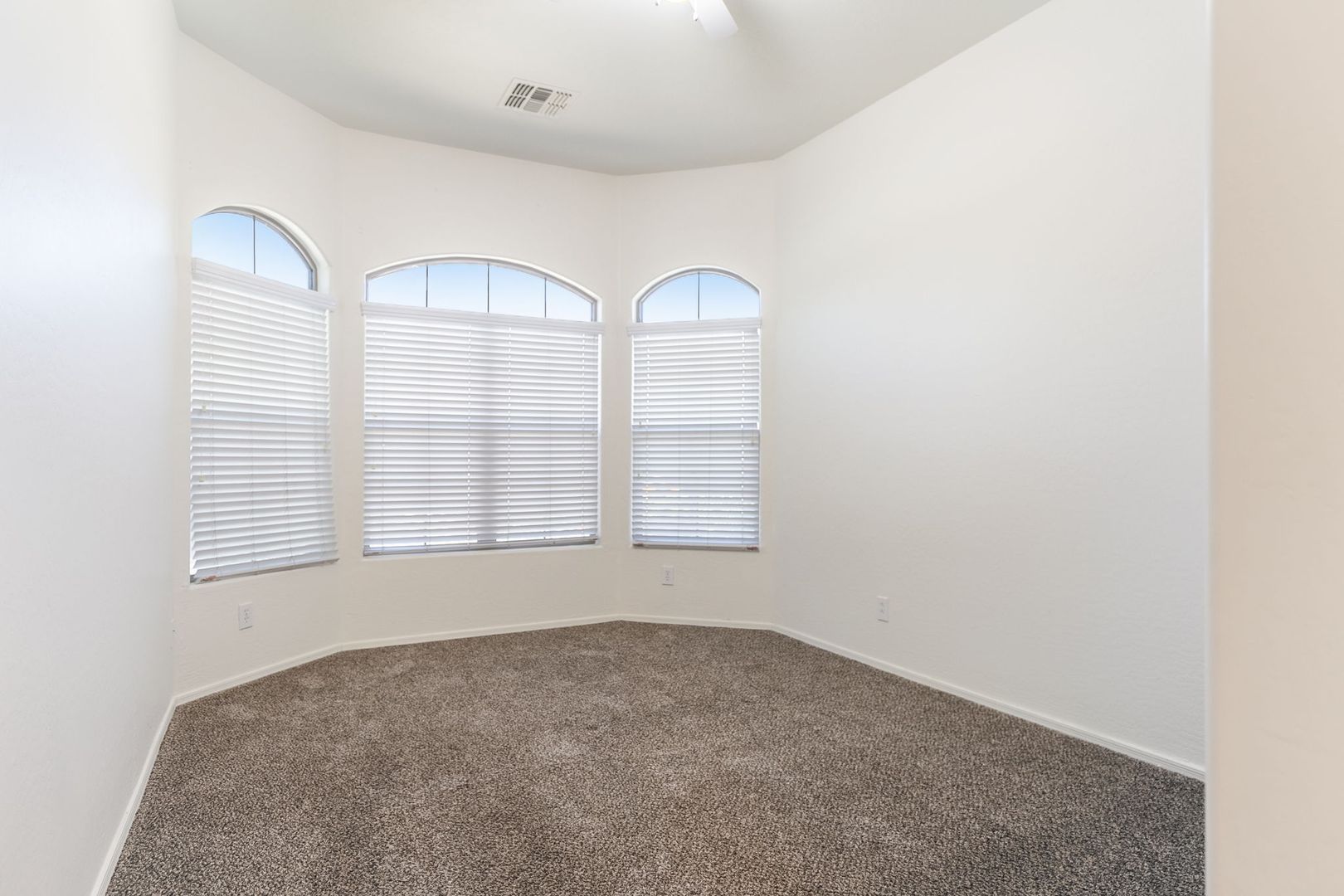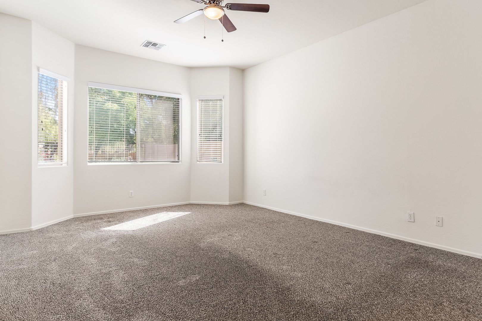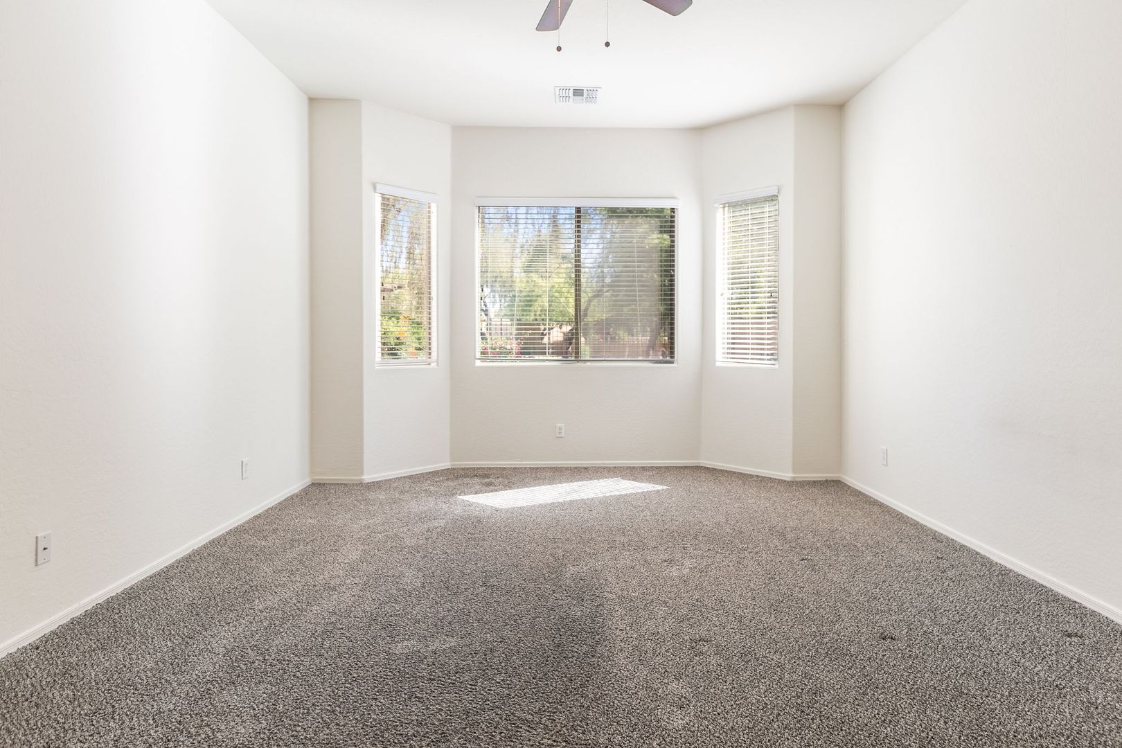 This home features 3 bed, 2 bath, plus a den/bonus room w/ double doors that can be used as a theater room, or office. Covered patio with built in gas grill, water softener & recently installed energy efficient AC. Master bedroom is in opposite side of house and away from other bedrooms & features separate tub/shower, over-sized walk-in closet, formal dining room, eat in kitchen with bay windows, gas range, built in microwave, dishwasher and refrigerator. Upgraded Low E windows. Tile in all the right places, large garage with 4' extension on a corner lot with views of the beautiful greenbelt. All this and it's just a short walk to community center which has a heated community pool/spa, club house, tennis, volleyball, basketball, small/large breed dog park, bocce ball, kids splash pad. Minimum one (1) year lease.  Refundable security deposit $2,500.00, rent $2,500.00 per month, $500.00 non-refundable cleaning fee, $50.00 non-refundable admin fee, application fee $90.00.   All deposits and fees are paid up front at the beginning of the lease.  Water, sewer, trash and gas are tenant responsibility .