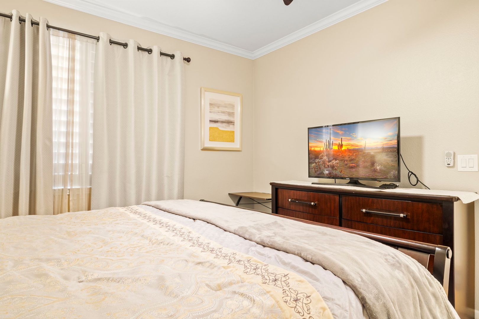 Premier, lower level, 2 bed 2 bath furnished condo in the gated community of The Plaza Residences. Features split floor plan w/each bedroom having its own attached bath & King size bed. Kitchen is equipped w/all dishes, cookware, & small appliances. Other features: 2 way fireplace, private, North facing patio, custom wood shutters, full size washer, dryer, sectional sofa, and 2 large walk -in closets. The Plaza Residences features 2 pools, fitness center, poolside wifi, outdoor shower, putting green, billiards, conference room, billiards and clubhouse. Located just 2 blocks South of Kierland Commons, featuring upscale shopping and dining. Refundable Security Deposit $3,00.00 due upon signing. Low Season $2,500.00 (May-Oct). High Season $5,000.00 (Nov-April). Non-Refundable Cleaning Fee $399.00 During low season, utilities, specifically the electric, are NOT INCLUDED in the monthly rental rate. An application fee of $90.00 and an administration fee of $50.00 applies to all rentals and are non-refundable. $175.00 additional cleaning fee will be added if tenant uses wood burning fireplace.