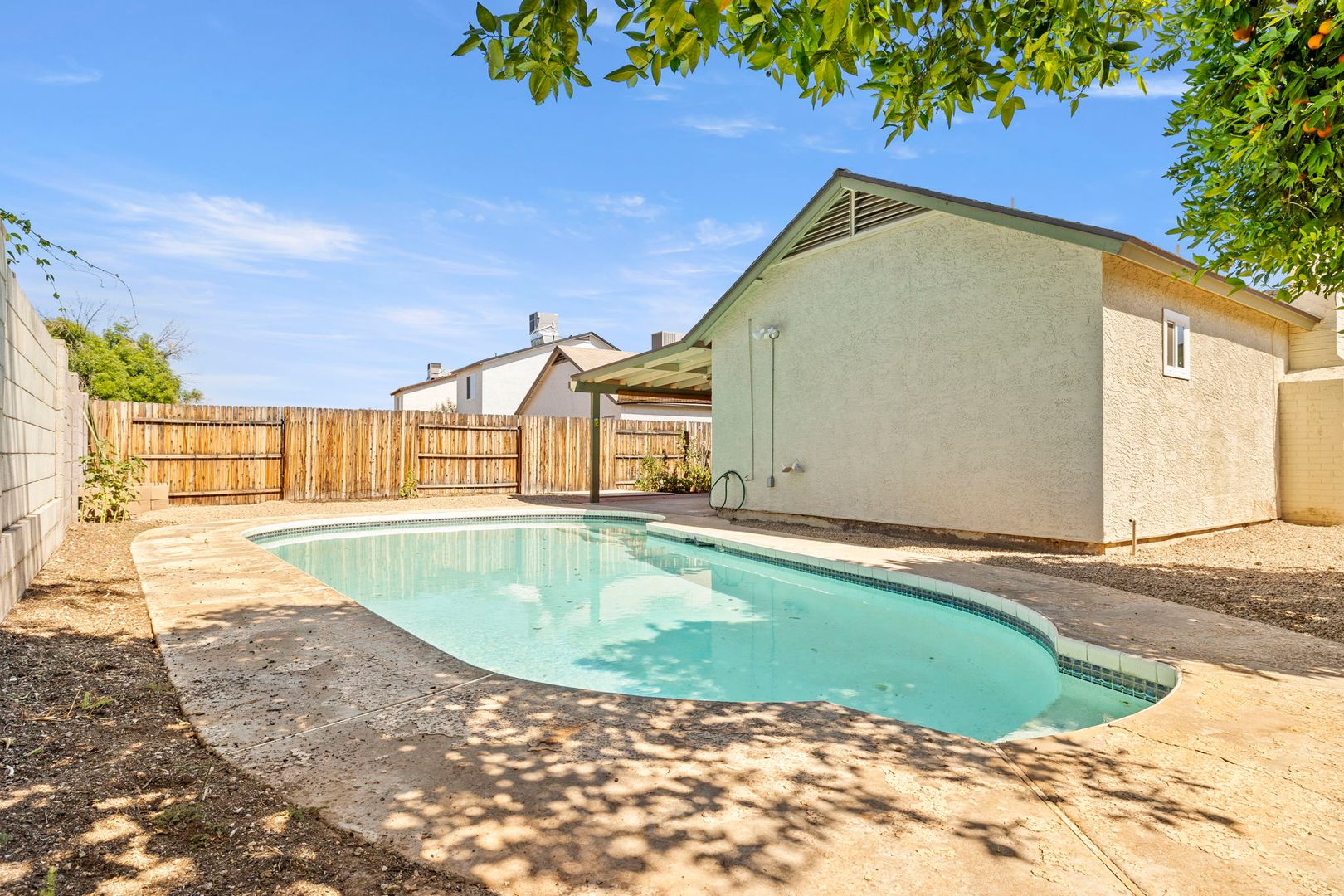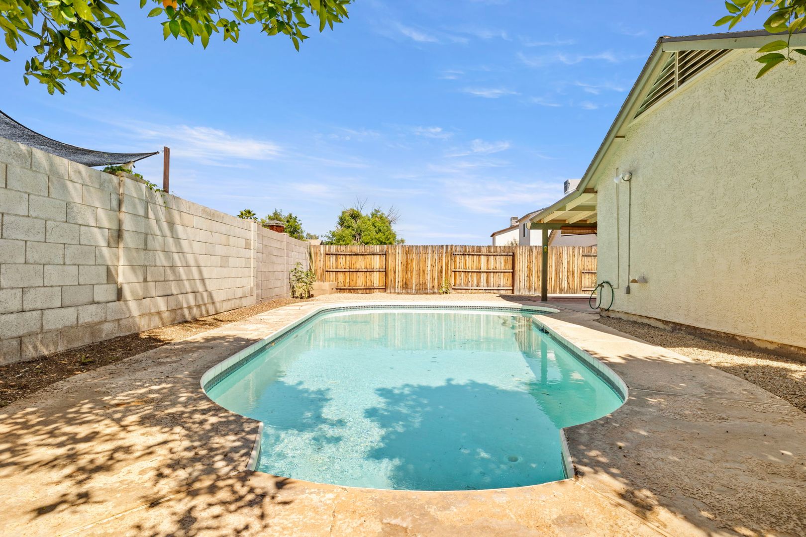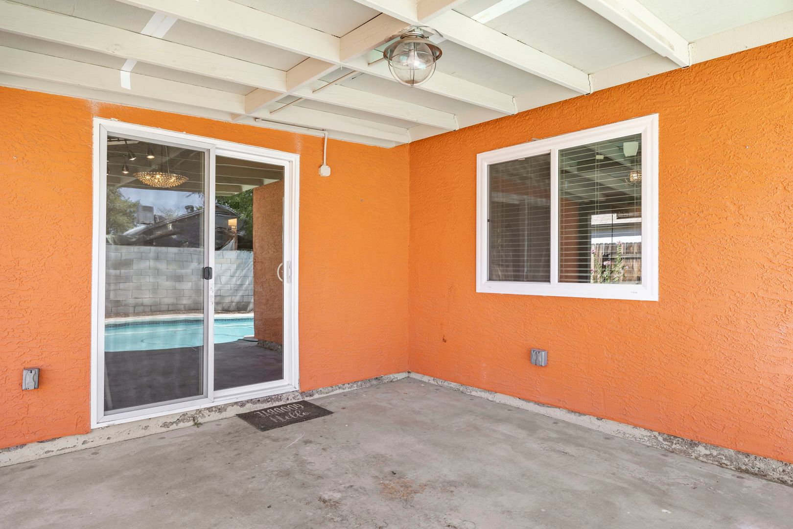 3 bed 2 bath home that has been freshly painted with new carpet in both guest bedrooms! Pet friendly. Private pool. Master bedroom features large closet, tiled walk in shower, custom lighting, and a tile floor. Kitchen has granite counters and breakfast bar. Full size washer and dryer, and refrigerator included. Living room has vaulted ceilings and a wood burning fireplace. New double pane windows and glass doors for energy efficiency. Won't last long. Tenant to pay for pool service and front and backyard landscape maintenance. Application fee $90.00. Refundable security deposit $2250.00. Non-refundable cleaning fee $450.00. Non-refundable general new tenant admin fee $50.00. Deposit and fees paid at the beginning of the lease. Rent $2250.00 per month.
