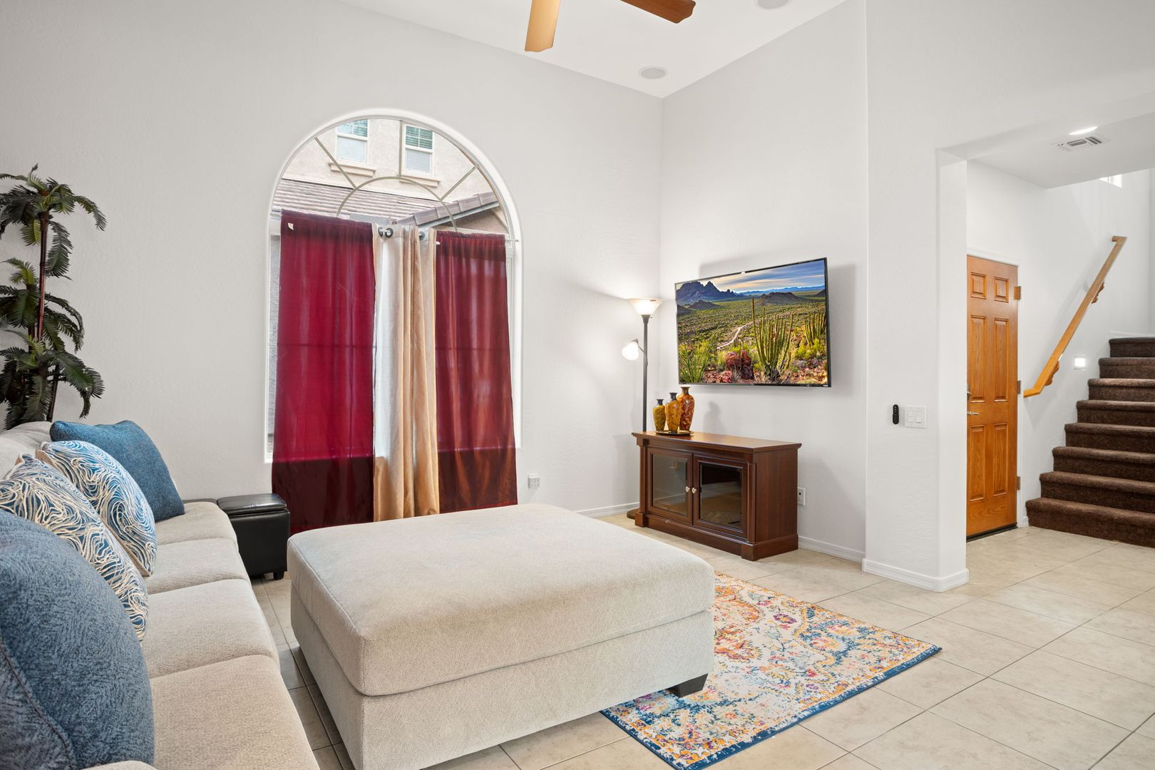 SIX MONTH MIN RENTAL-FIRESIDE- Built in 2012, this 3 bedroom 2.5 bath home is fully furnished and ready for you to move in. 2 car attached garage with direct access to home. Tasteful furnishings, open floor plan, TV's in all bedrooms - all bedrooms upstairs. Kitchen has granite counters and stainless steel appliances. All linens included; cable, wi-fi and utilities included with high season rentals. Master bedroom has a king size bed and attached bath with double sinks/vanity and walk-in shower. Washer/dryer included. Private patio. Fireside is a gated community with great amenities and a gorgeous community center with state of the art Fitness,Huge pool area, beautiful landscaping, resort style amenities. Located minutes from Desert Ridge Marketplace, with easy access to 101 and 51. Great location! $90 application fee, $50 admin fee, and $399 non refundable cleaning. Refundable $2,300 damage deposit. November-April are $4200 per month, and May-October-$2300 per month. Wifi, and electric not included in summer rates.