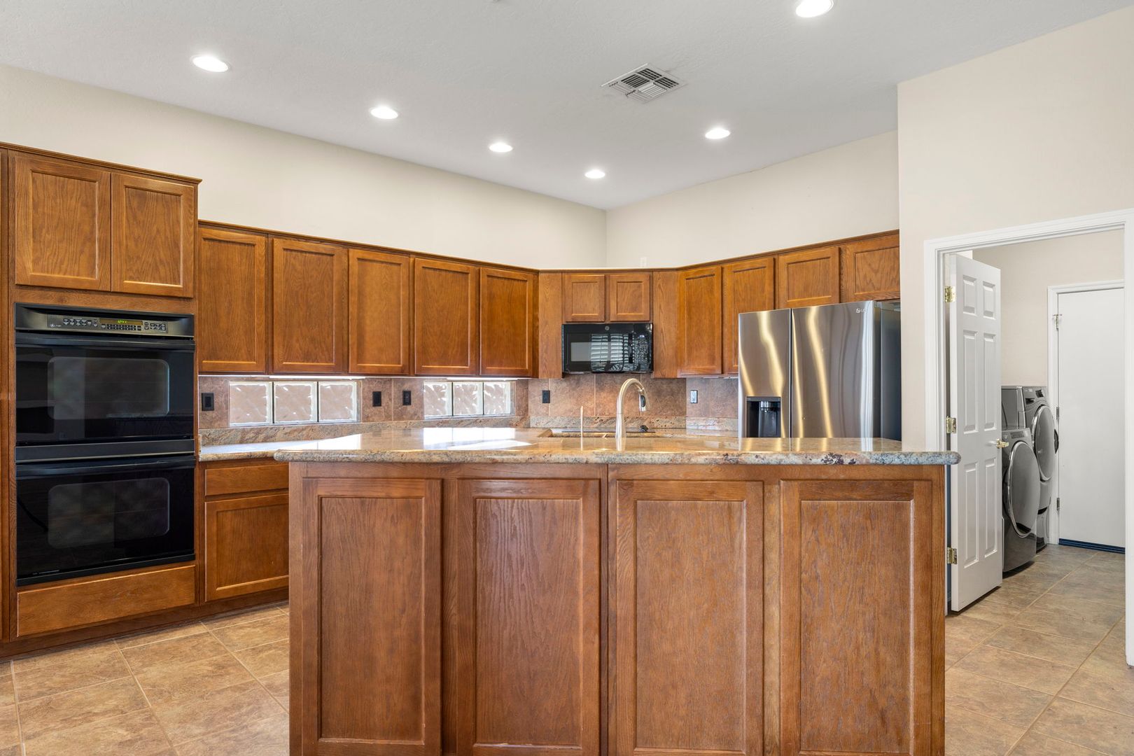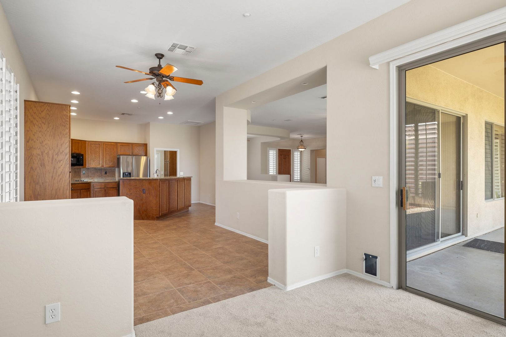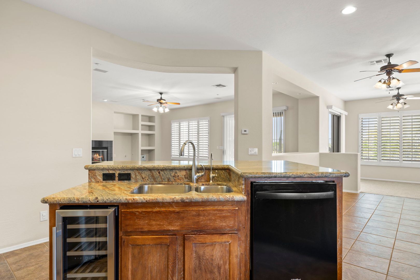 Premier golf course lot with amazing mountain and golf views. One of the few long term rentals in the Anthem Country Club. Single family home with casita. Main house has 2 bedrooms and 2 baths, and casita is 1bed 1 bath, separate a/c, walk in closet, and private access from the front patio. Open living room with gas fireplace, and wood floors. Just off the kitchen is a separate office area that faces the window with views of golf course and mountains. Kitchen has breakfast bar, granite counters, wine refrigerator, and lots of cabinets. Separate laundry room off garage with additional storage. Large master suite with attached bath, walk in closet, and separate tub shower. Nonrefundable cleaning fee $450 and new tenant admin $50. $90 application fee