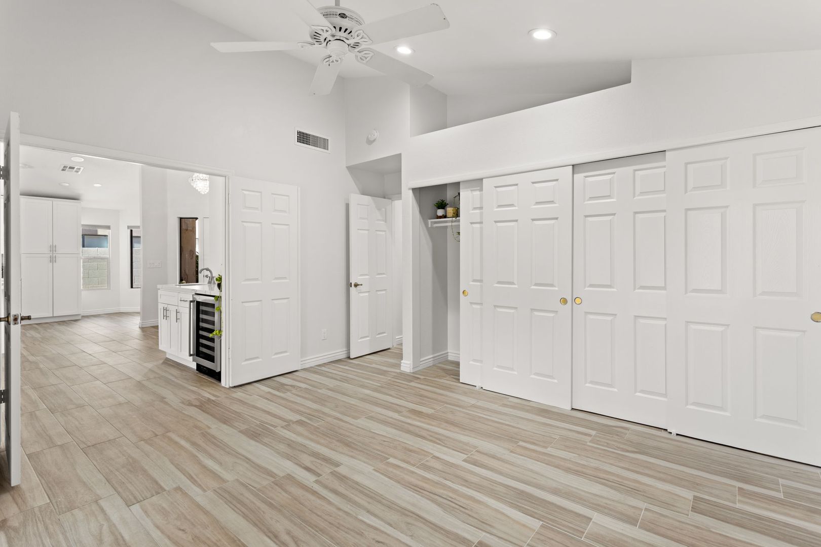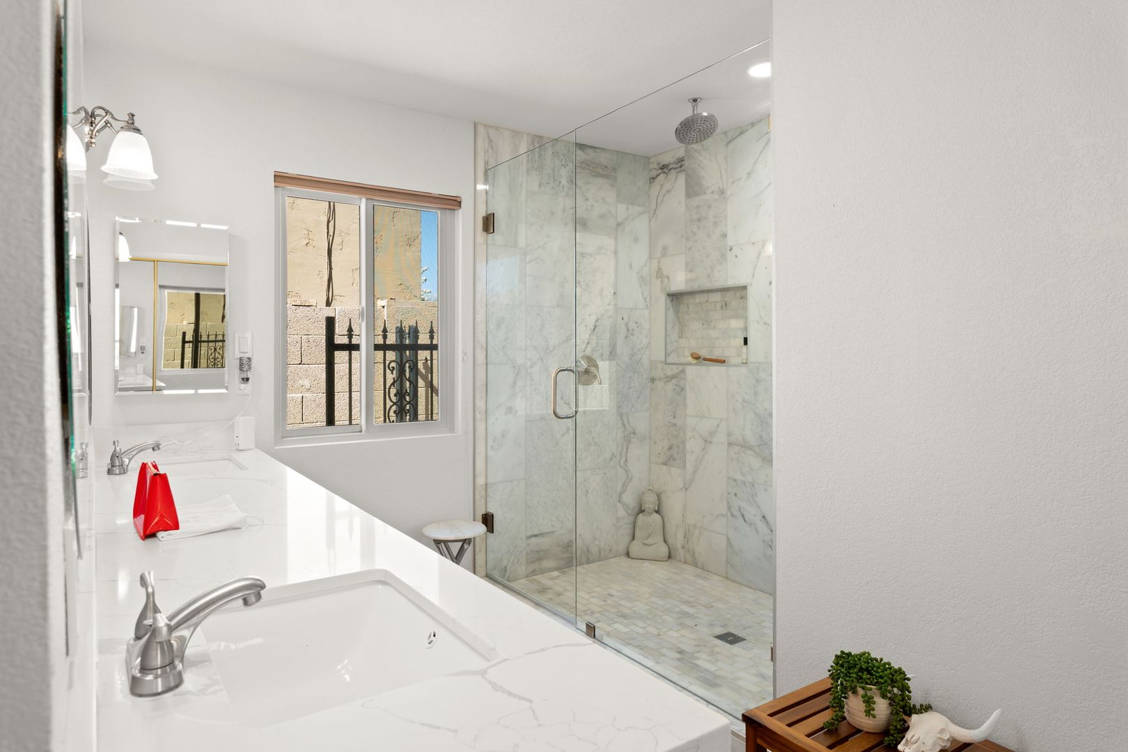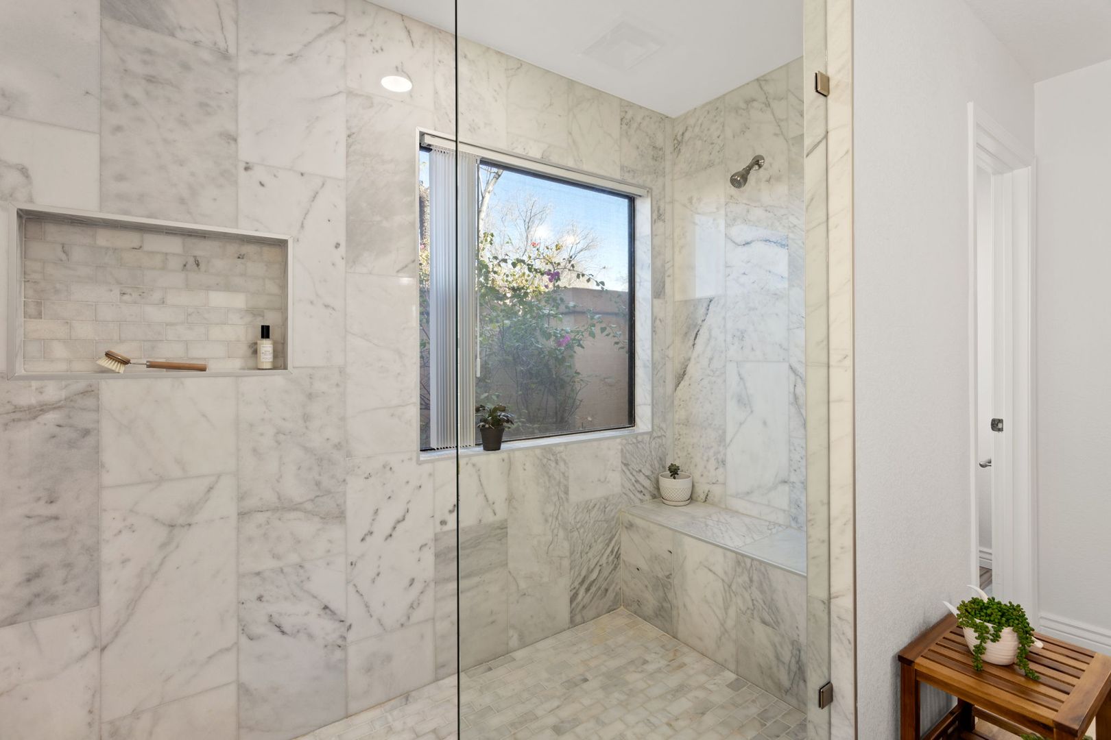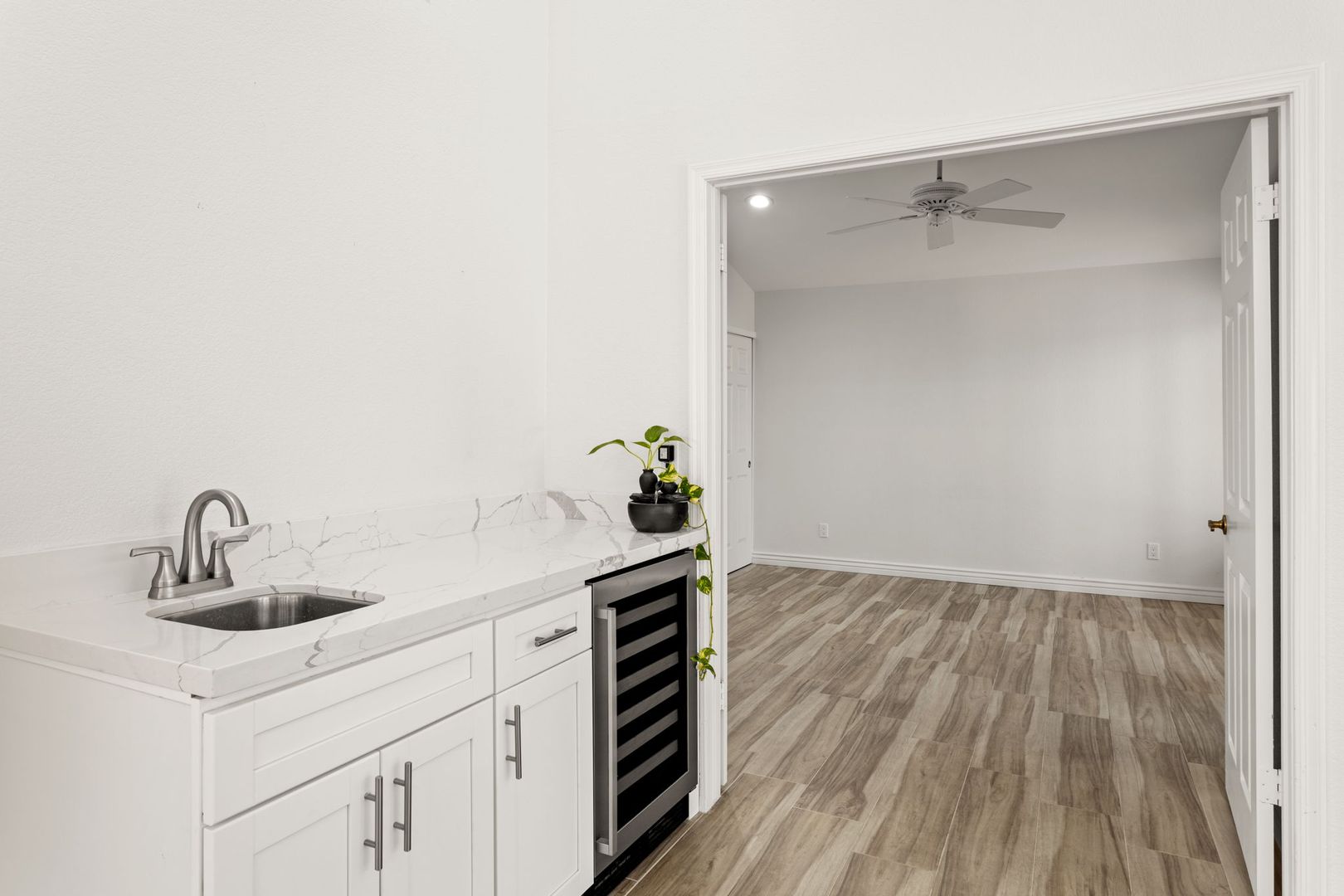 Completely remodeled, single level 3 bed 2 bath in prime Scottsdale Location! The nicest available rental in Sweetwater Ranch. Light and bright, quartz slab counters, clear view refrigerator, wood burning fireplace -wet bar with WINE REFRIGERATOR. Vaulted ceilings, North South exposure. Large master suite with his/hers sinks, 2 closets, custom-all marble-walk-in shower with rain flow feature. Other features: 2 car attached garage, separate laundry room, screened Arizona room, solar assist hot water heater, reverse osmosis drinking water. Washer, dryer refrigerator included. Home is located near community pool and spa, and backs to the walking trails.  $450 non refundable cleaning fee, $50 admin fee. 490 application fee $175 additional cleaning fee is charged if tenant uses wood burning fireplace.